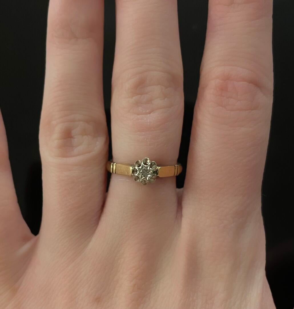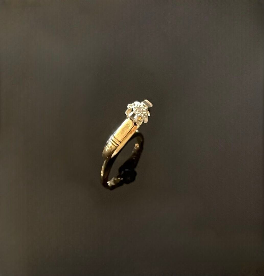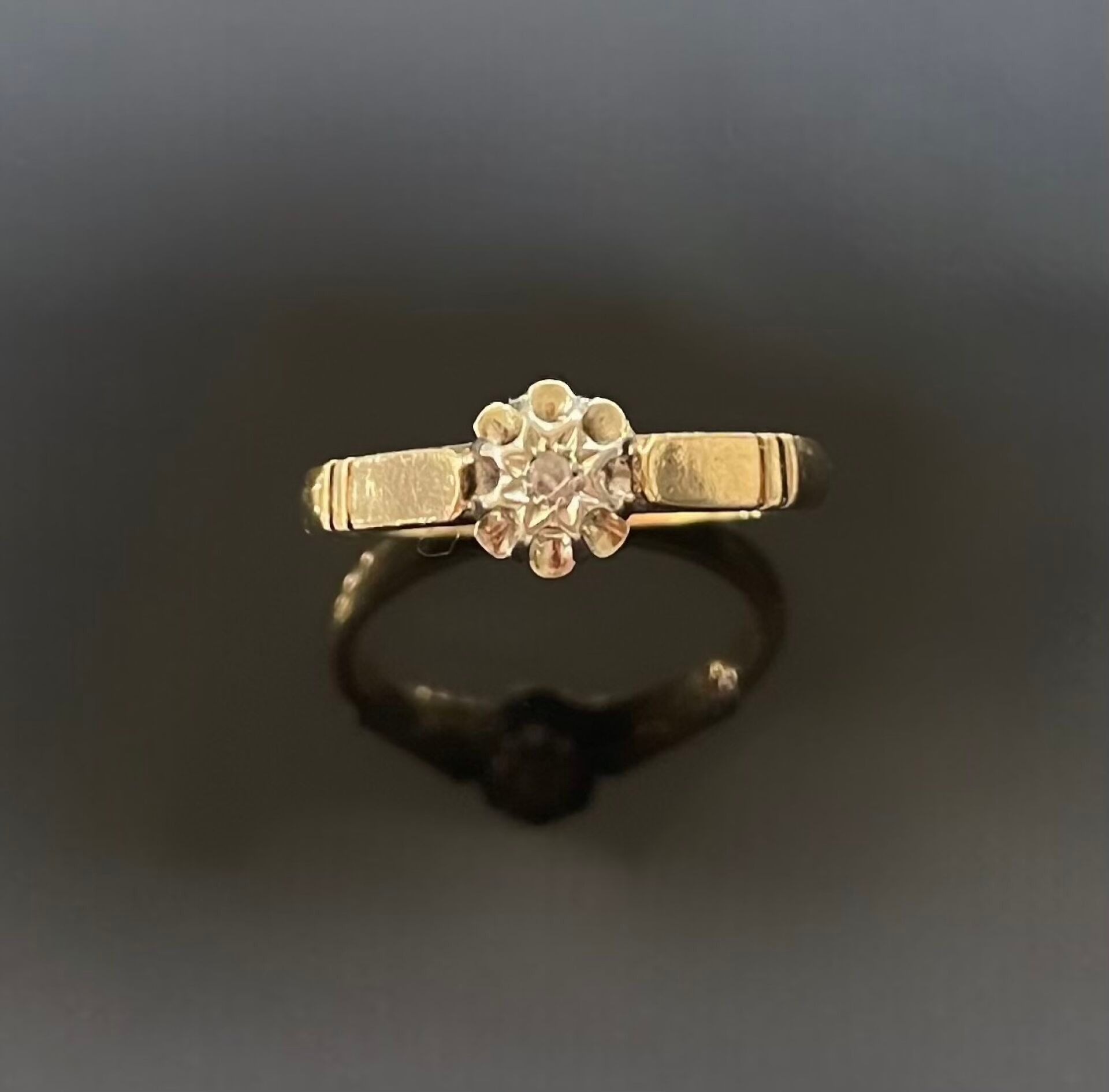 RING in yellow and white gold (750) set with a small brilliant in a star motif