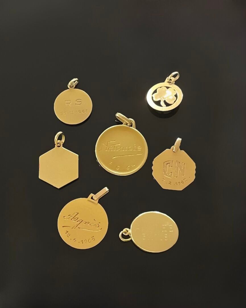 Lot of seven medallion PENDANTS in yellow gold (750) represe…