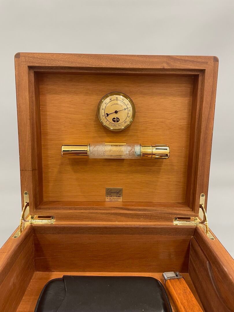 DAVIDHOFF Cigar cellar in wood and veneer. Plate inside