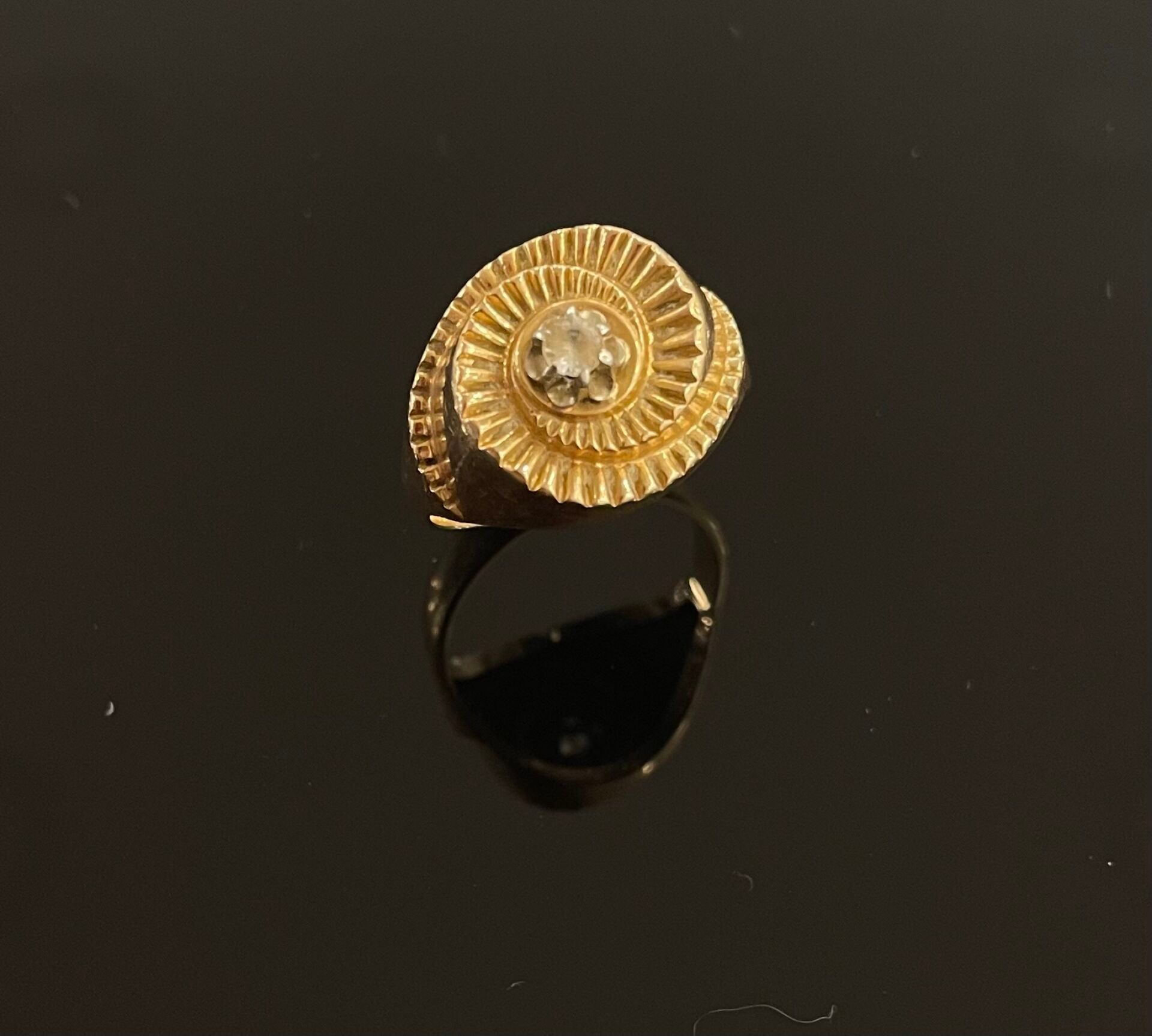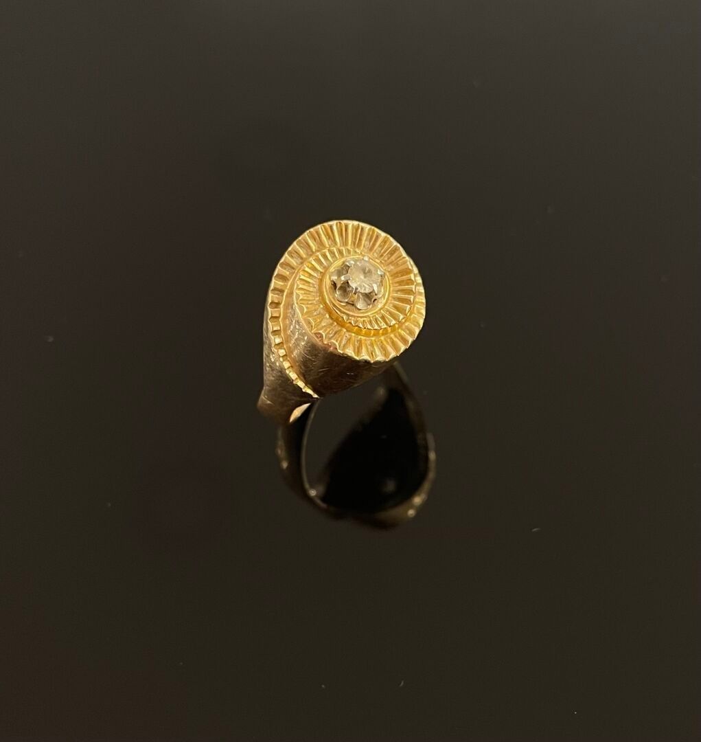 Tourbillon ring in yellow gold (750) with a brilliant in the…