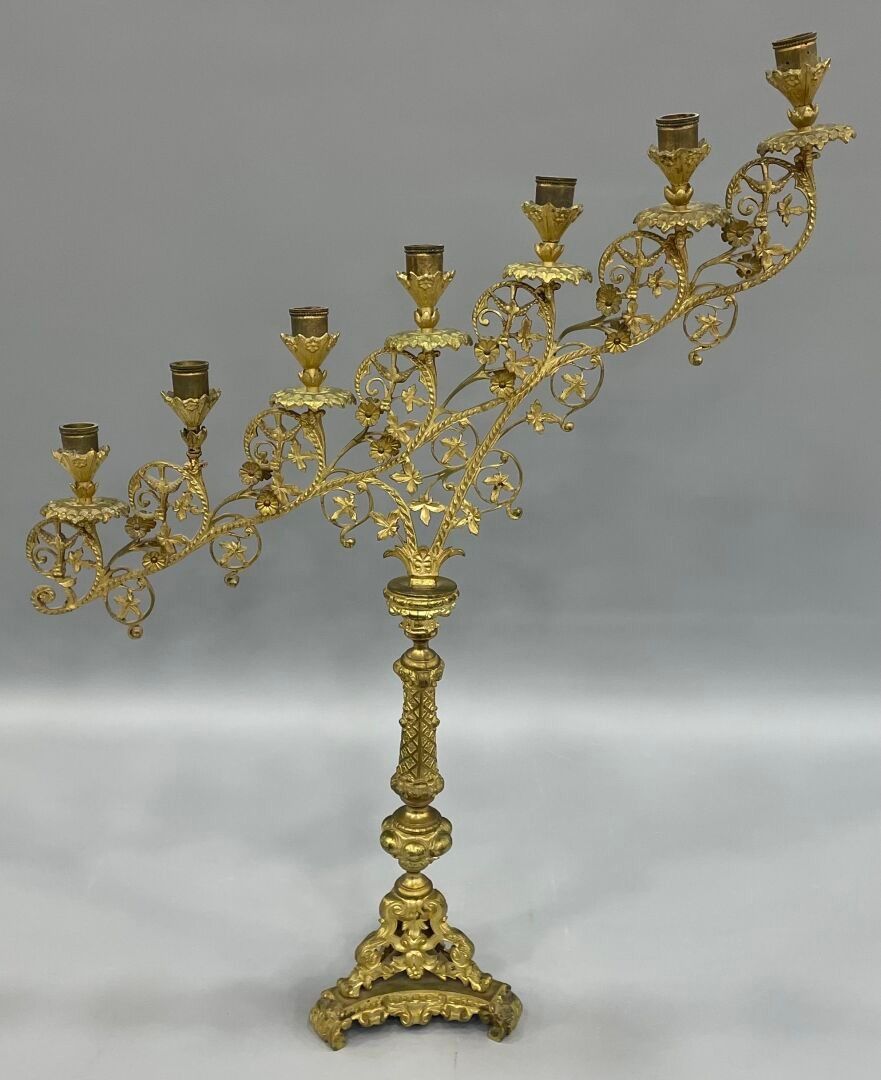 An ormolu Neo-Gothic style seven-light altar rail with openwork foliage and scrolls.