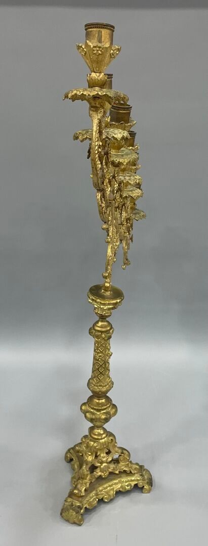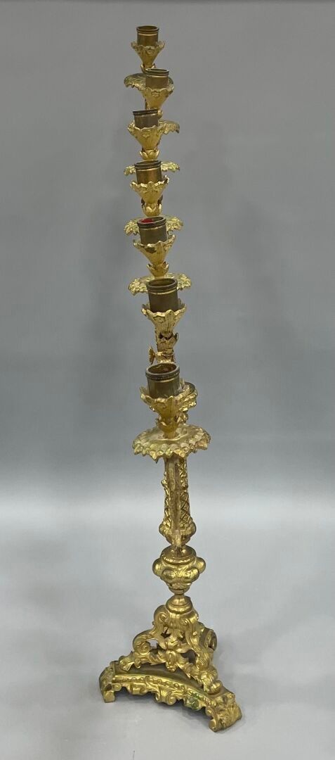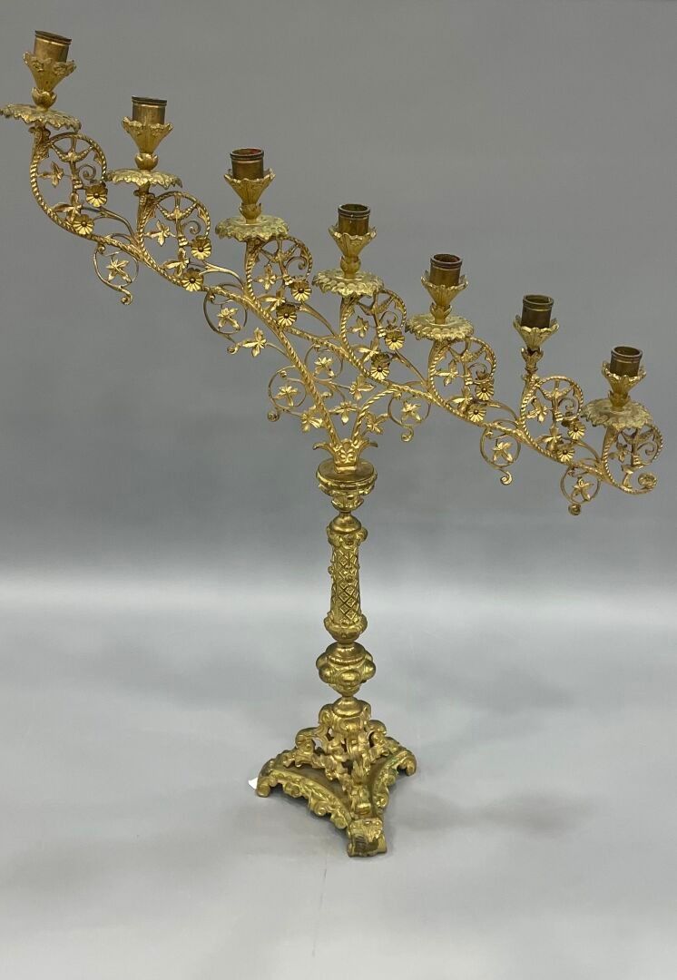 An ormolu Neo-Gothic style seven-light altar rail with openw…