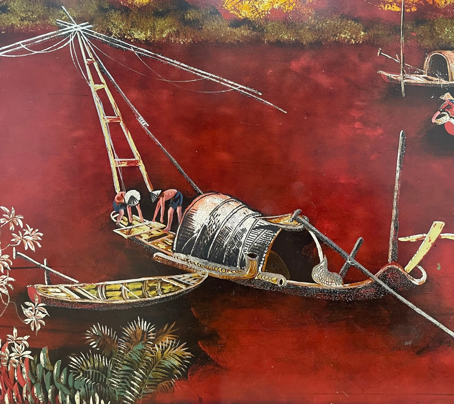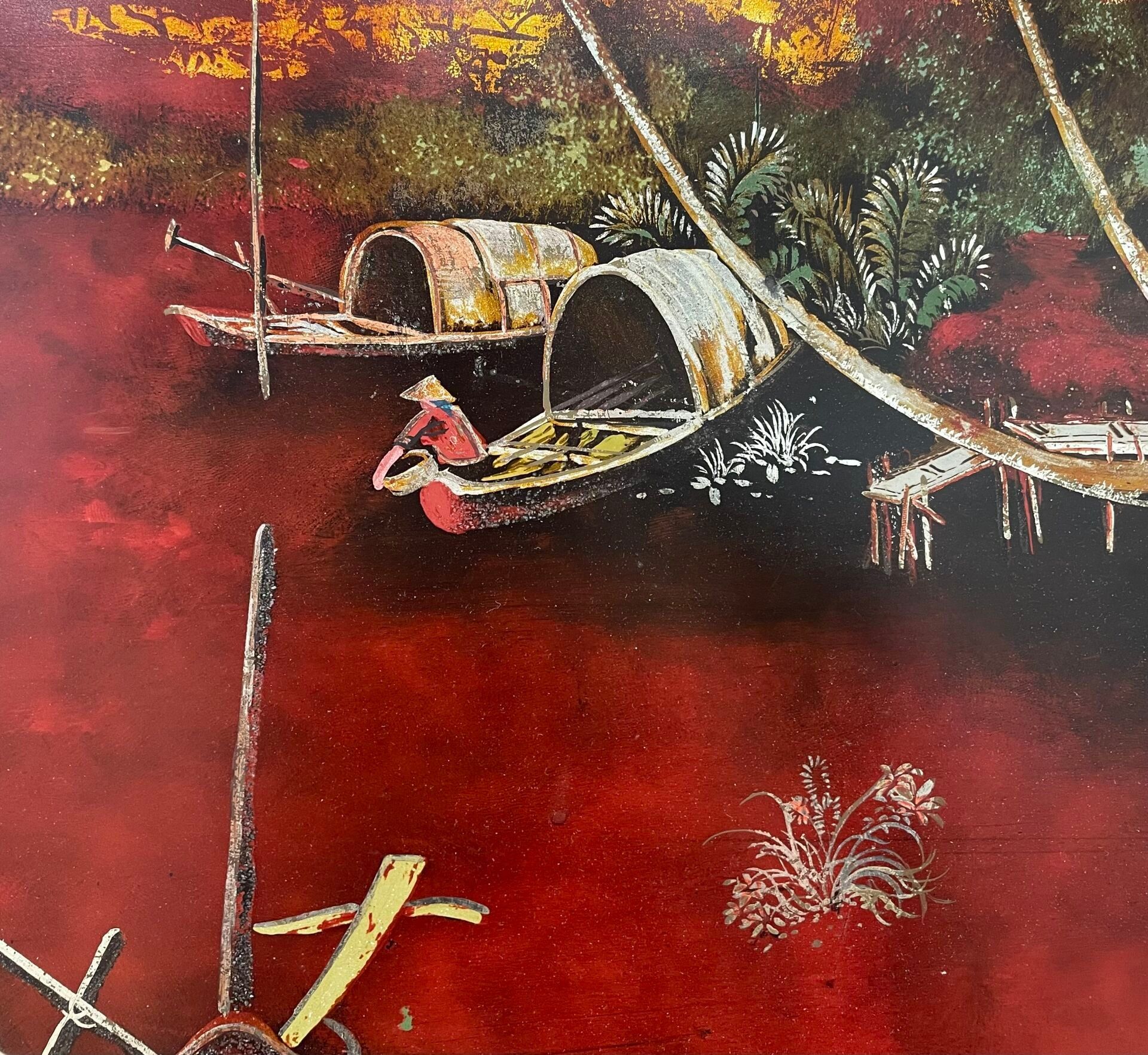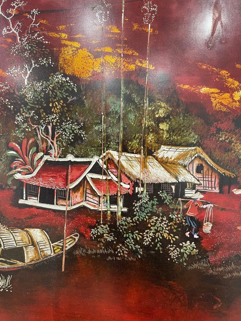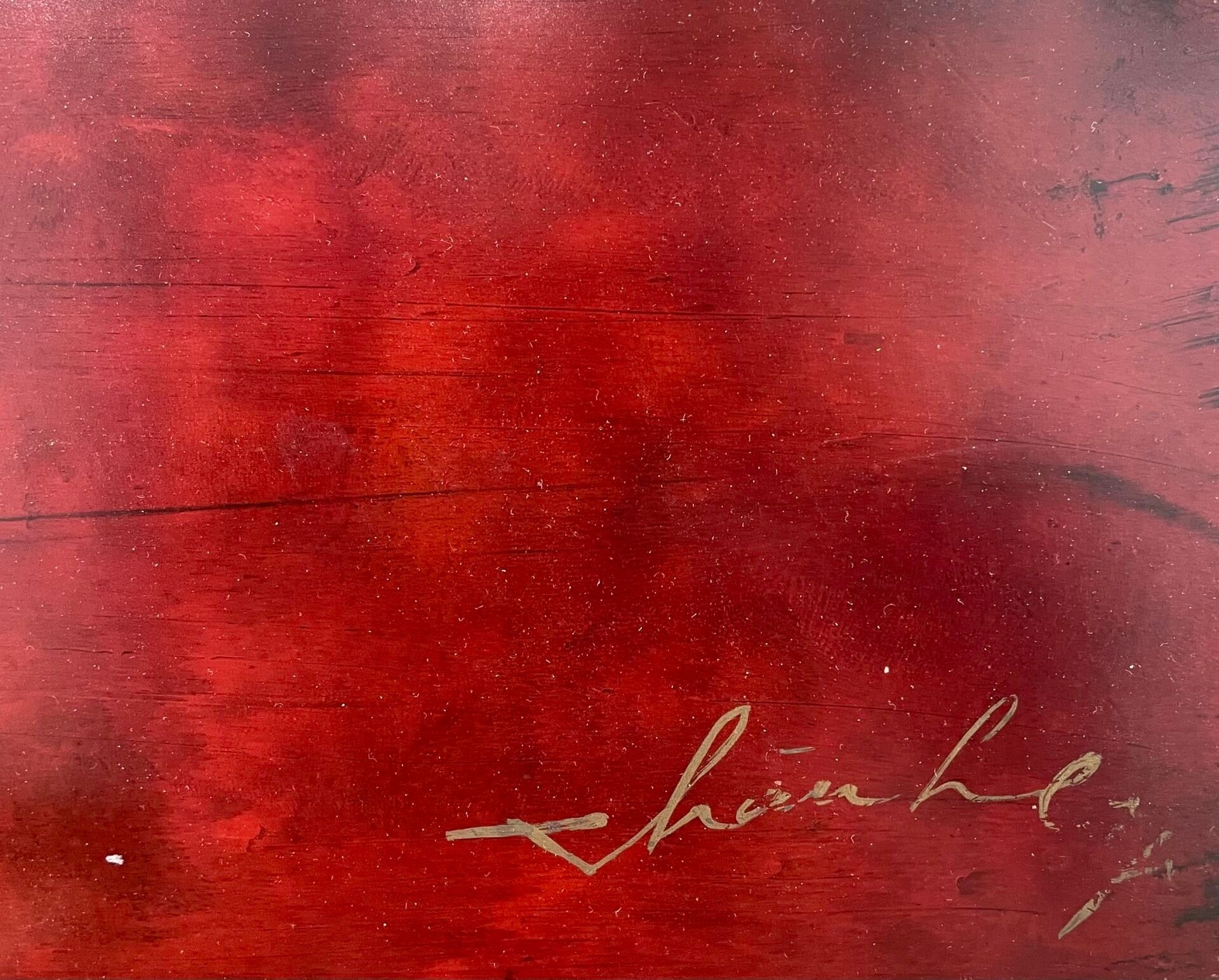 Lacquered panel on red background