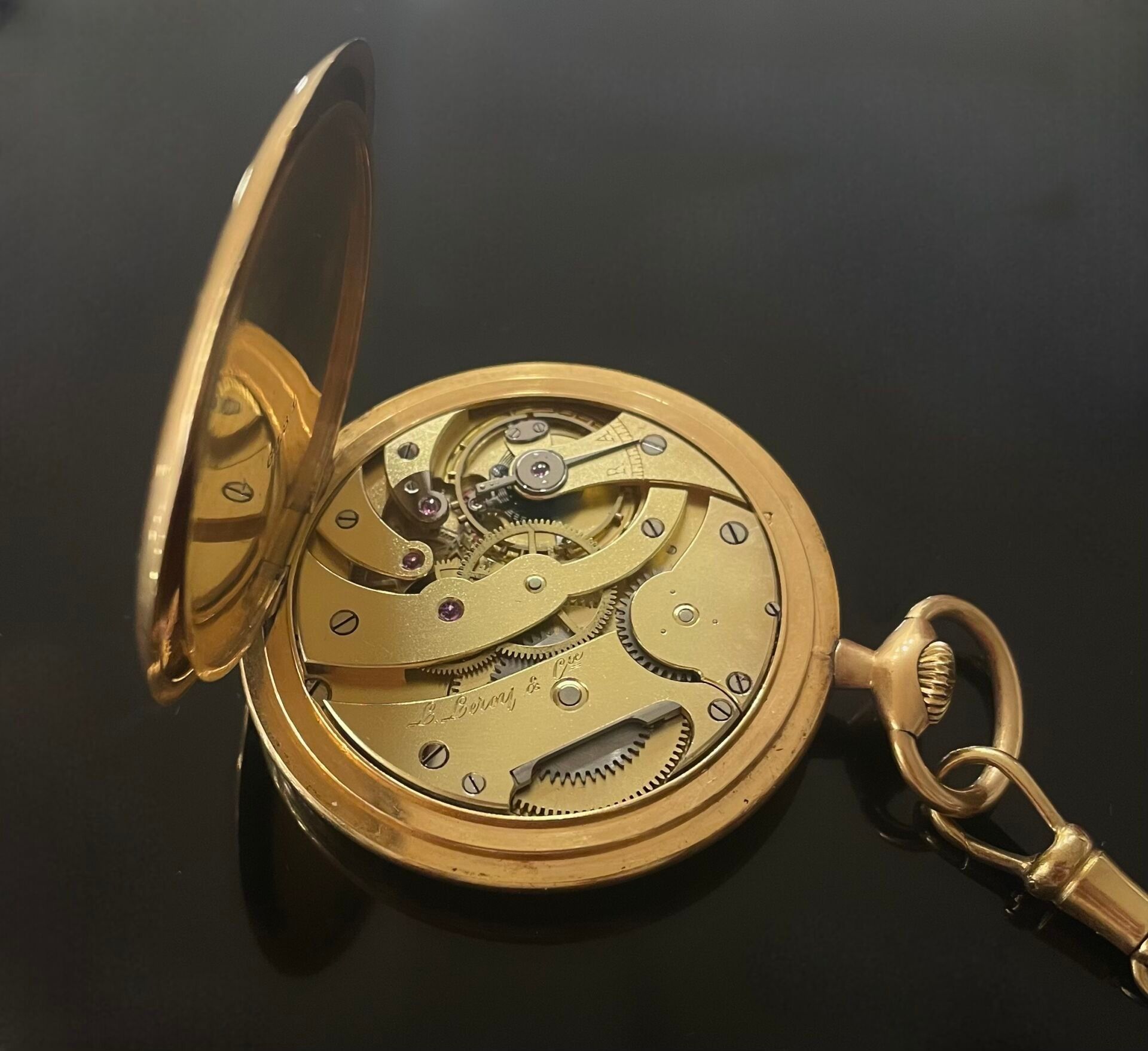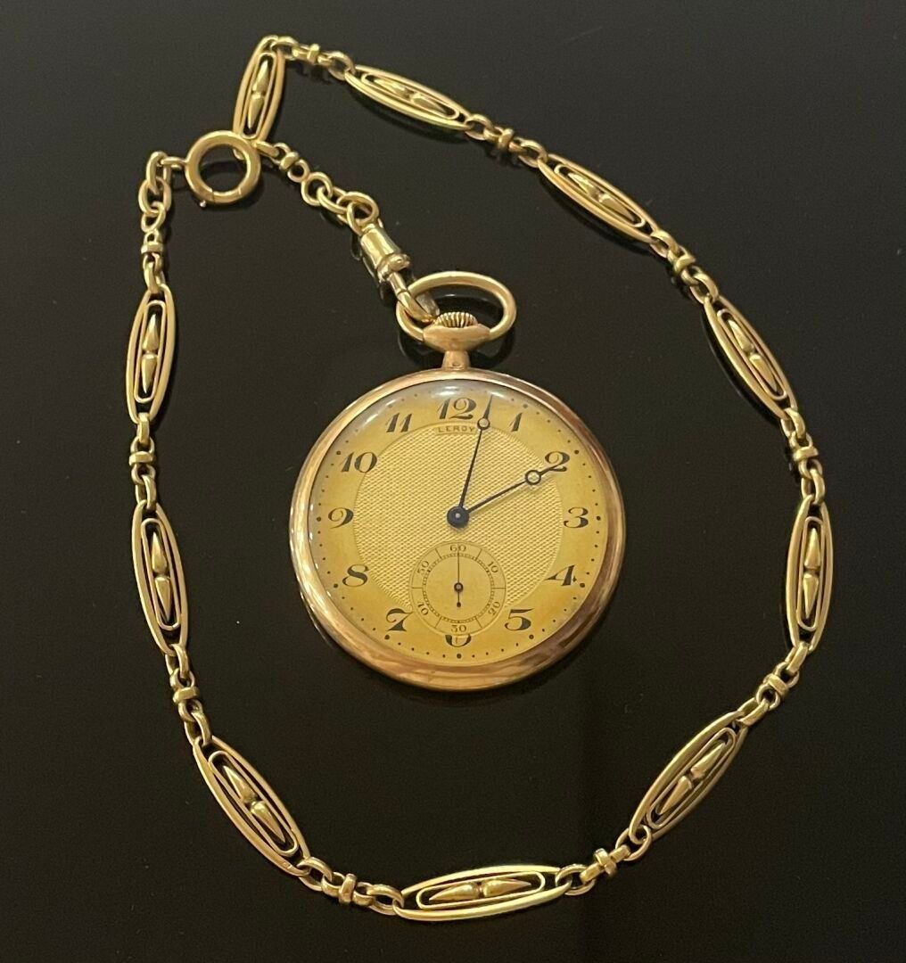 L.LEROY & Cie Yellow gold (750) pocket watch with olive chai…
