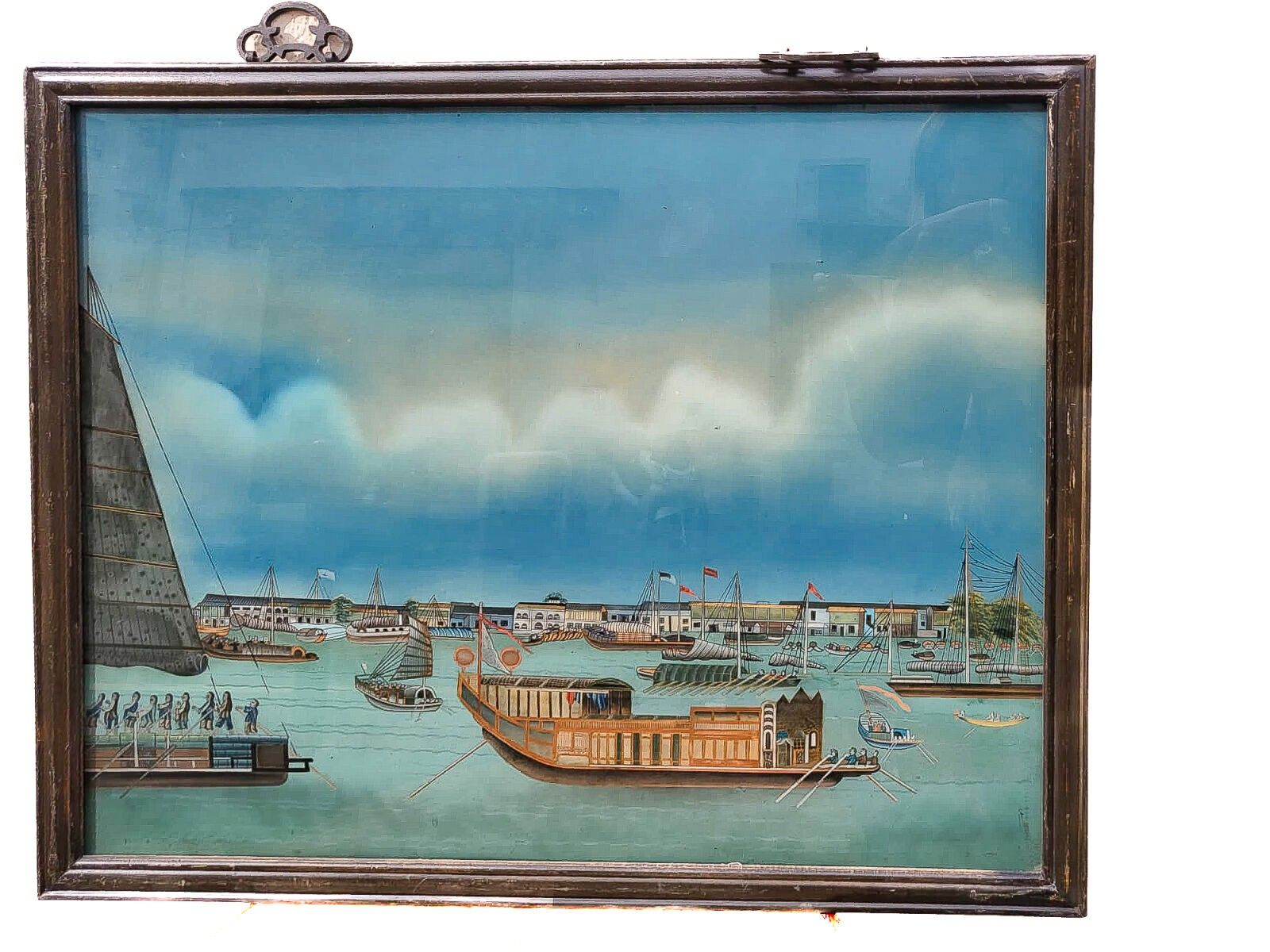 CHINA Fixed under glass representing a river landscape