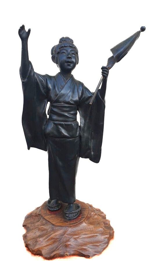 JAPAN Dark patina bronze sculpture of a woman with her arms …