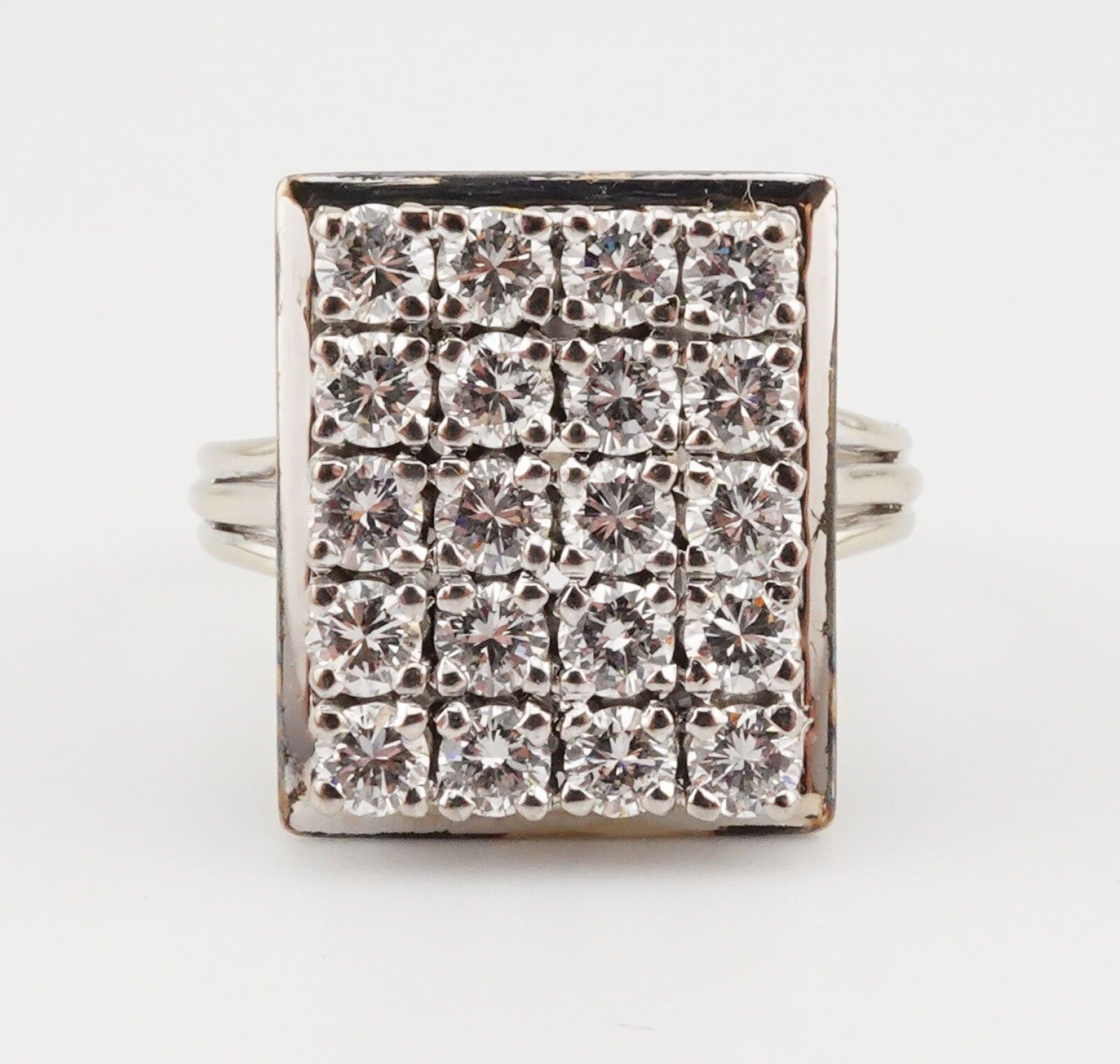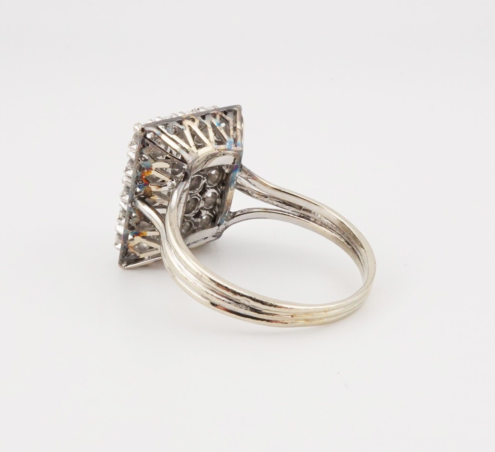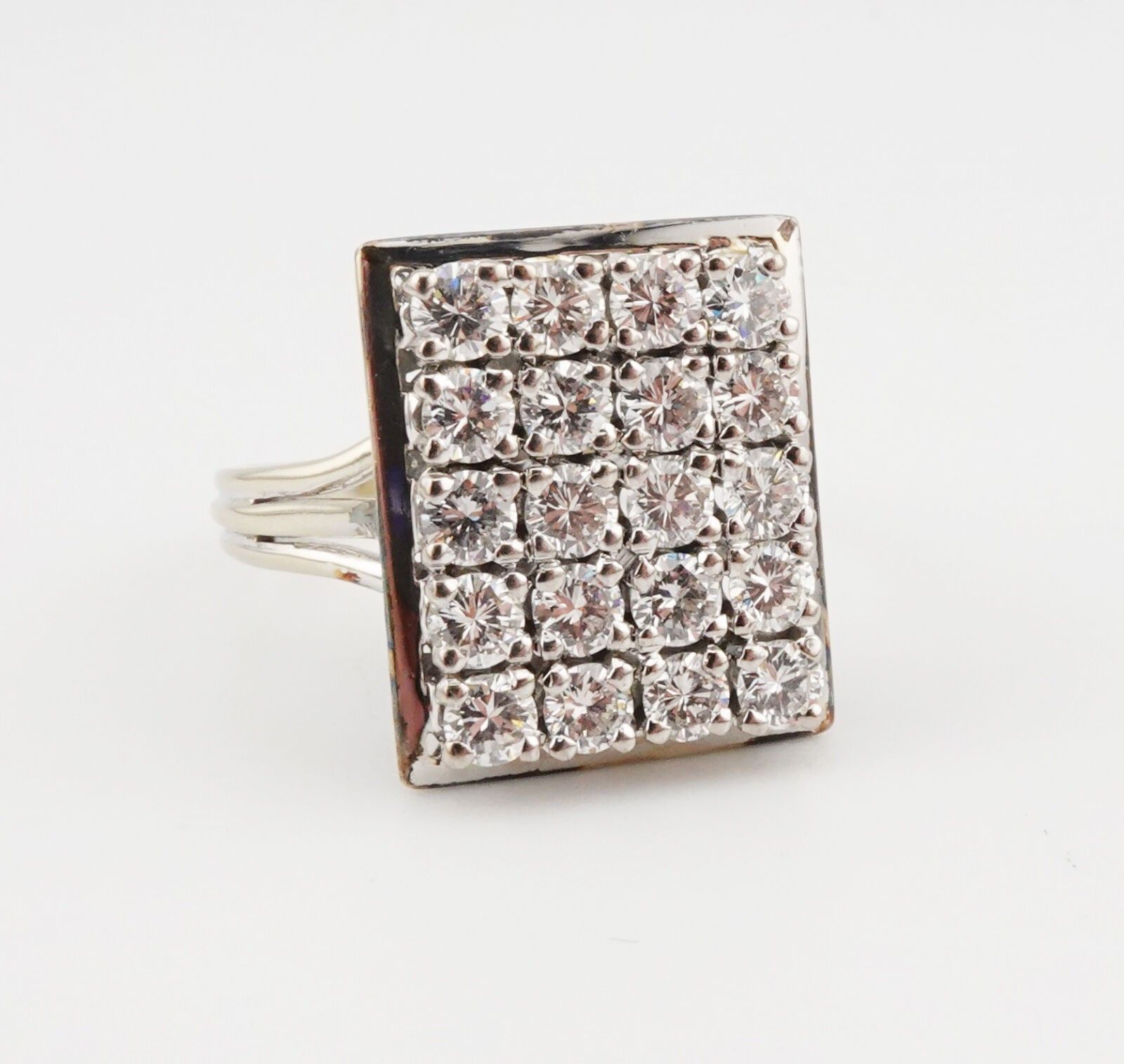 White gold ring set with twenty diamonds assembled in a rectangle on an openwork ring head Finger size : 64 Gross weight: 9.4 g JEWELLERY KEPT IN A SAFETY DEPOSIT BOX, SOLD BY DESIGNATION WITHOUT DISPLAY, NO JEWELLERY ON THE PREMISES