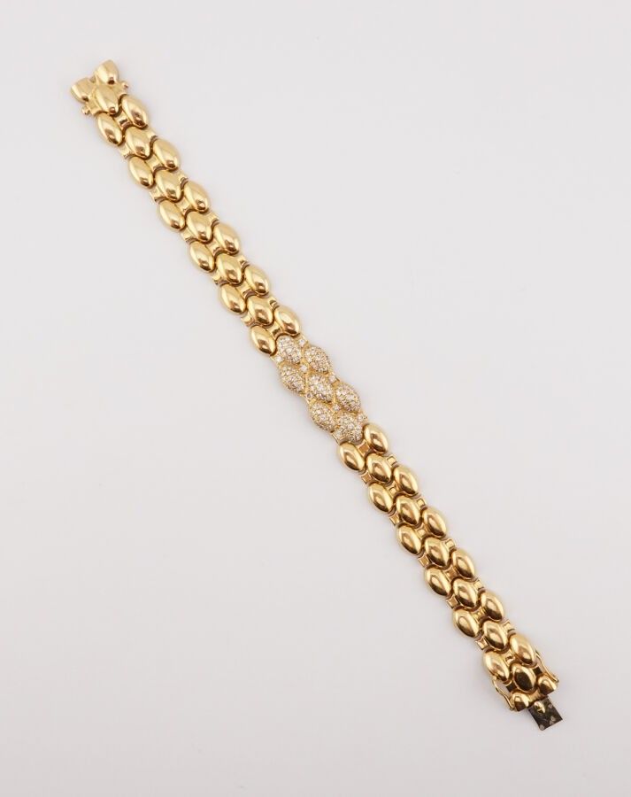 Articulated link bracelet in yellow gold, partly set with diamonds