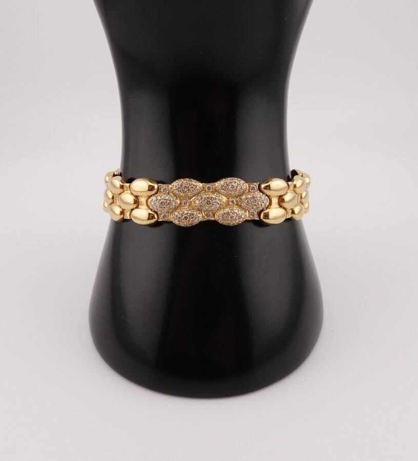 Premium Articulated link bracelet in yellow gold, partly set with di…