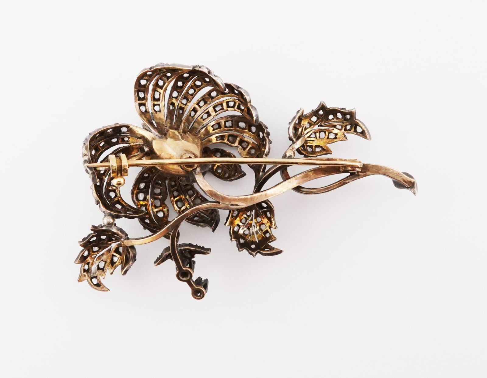 Yellow gold and silver floral brooch set with diamonds, Napoleon III period