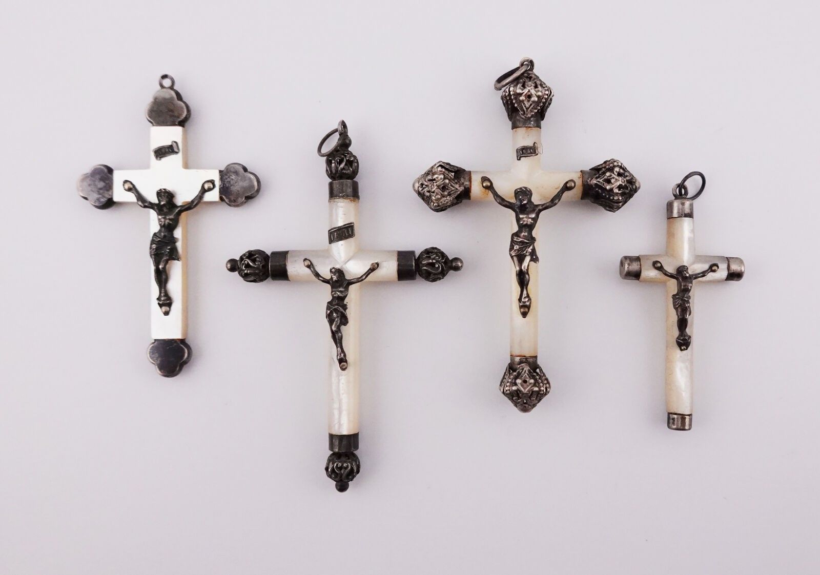 Set of four mother-of-pearl and silver Christ on the Cross pendants