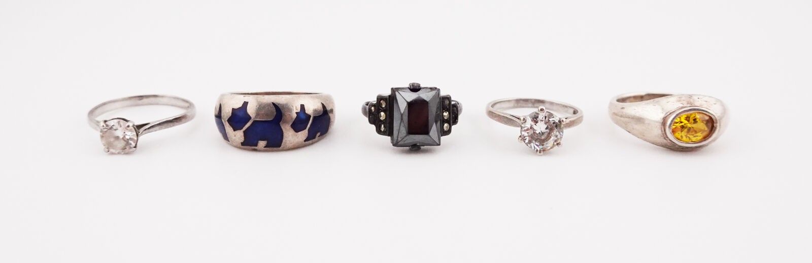 Lot of five stone-set silver rings