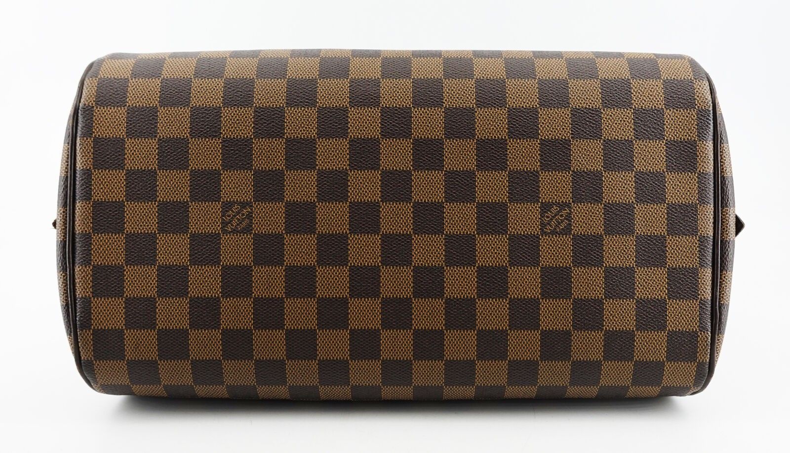 Ribera" model handbag in chequered coated canvas and brown leather, n° CA4048, with its dustbag