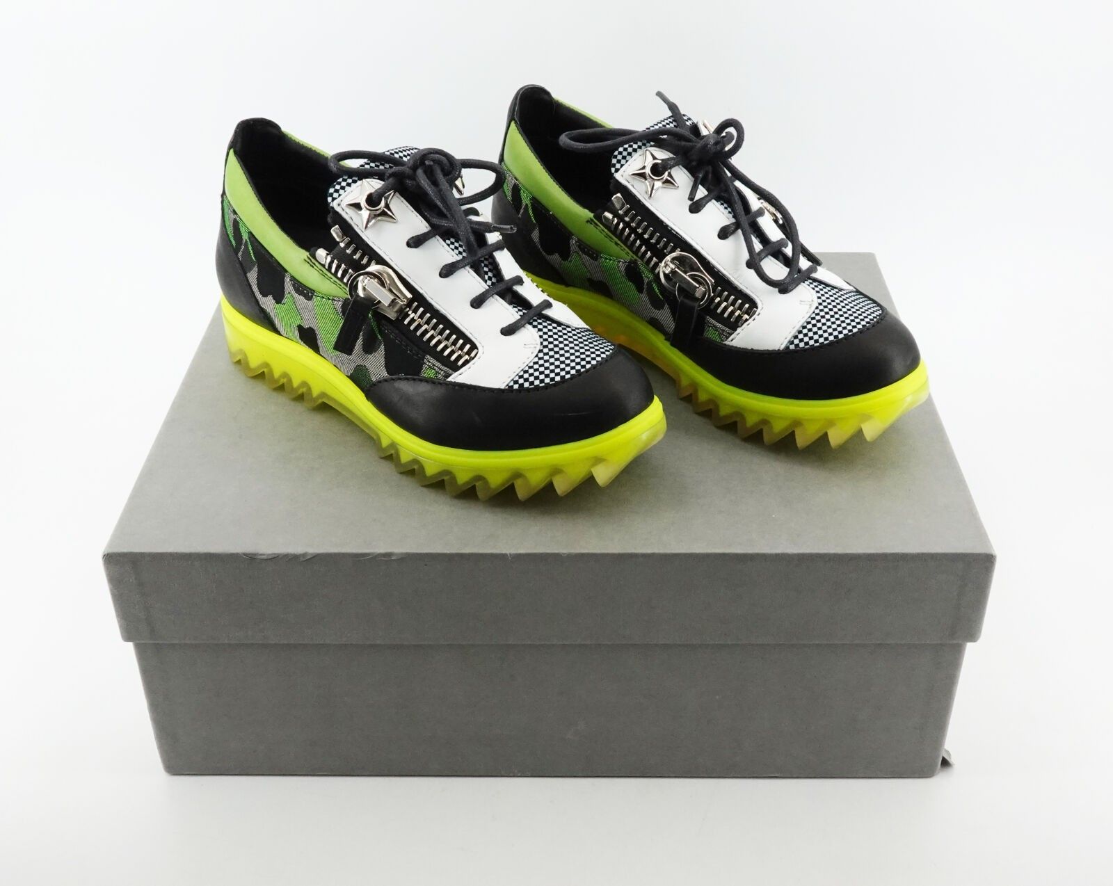 GIUSEPPE ZANOTTI Pair of green and white trainers, size 35.