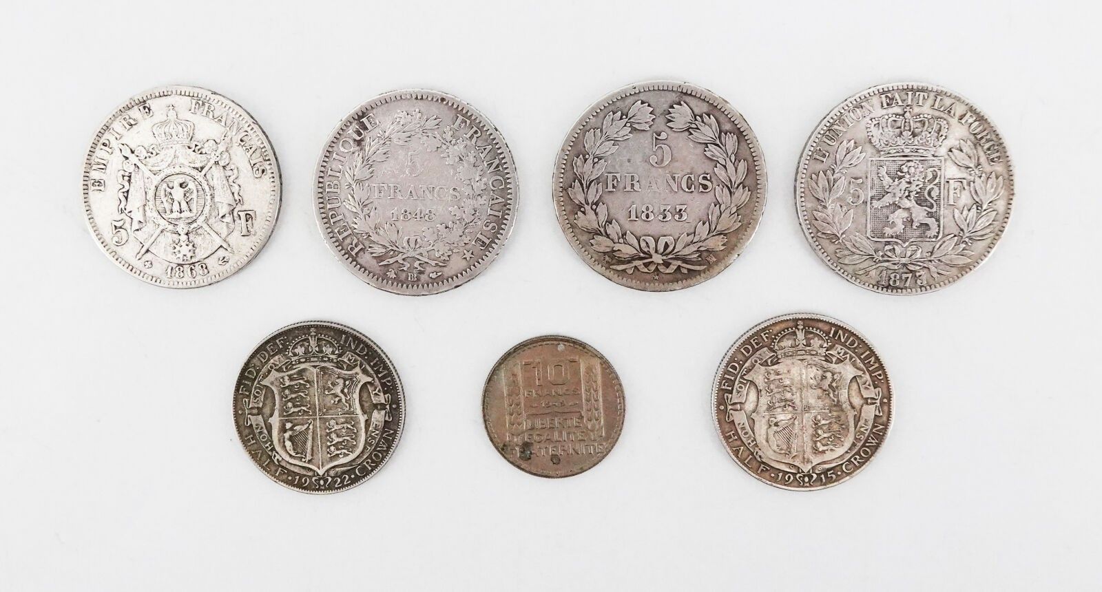 Lot of seven silver coins: 5 Francs, 10 Francs, etc.