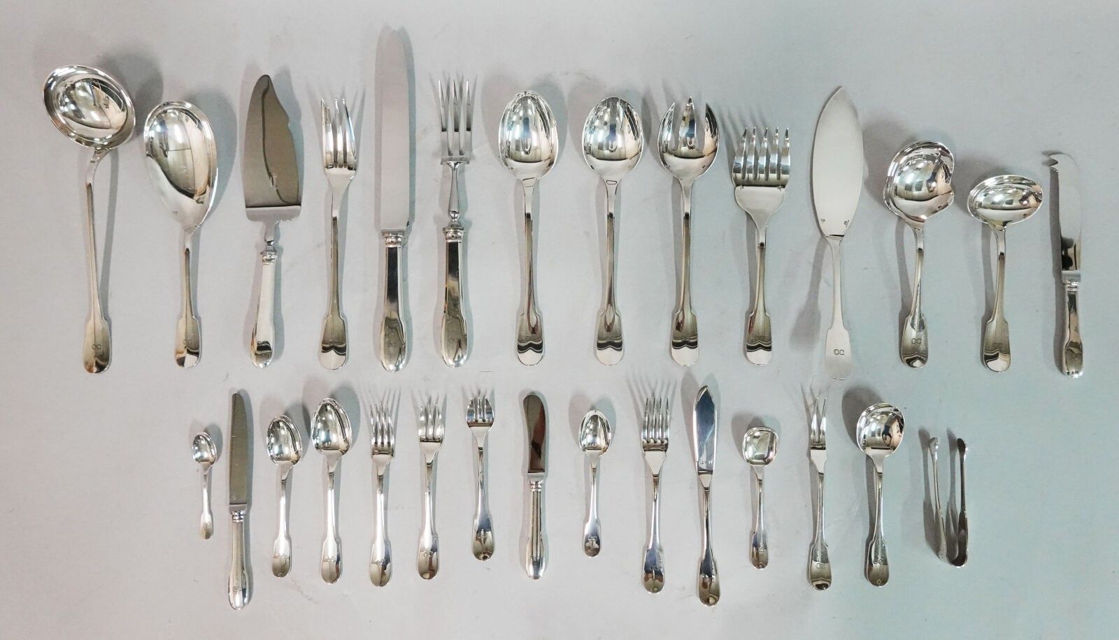 Set of 29 "Cluny" silver-plated serving pieces and individual pieces of cutlery (presentation models)