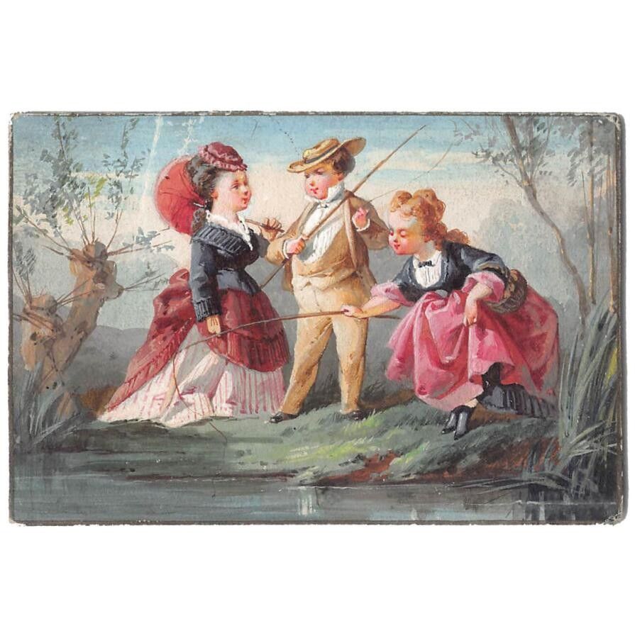 Advertising illustration project in gouache in advertising card format depicting children sinning