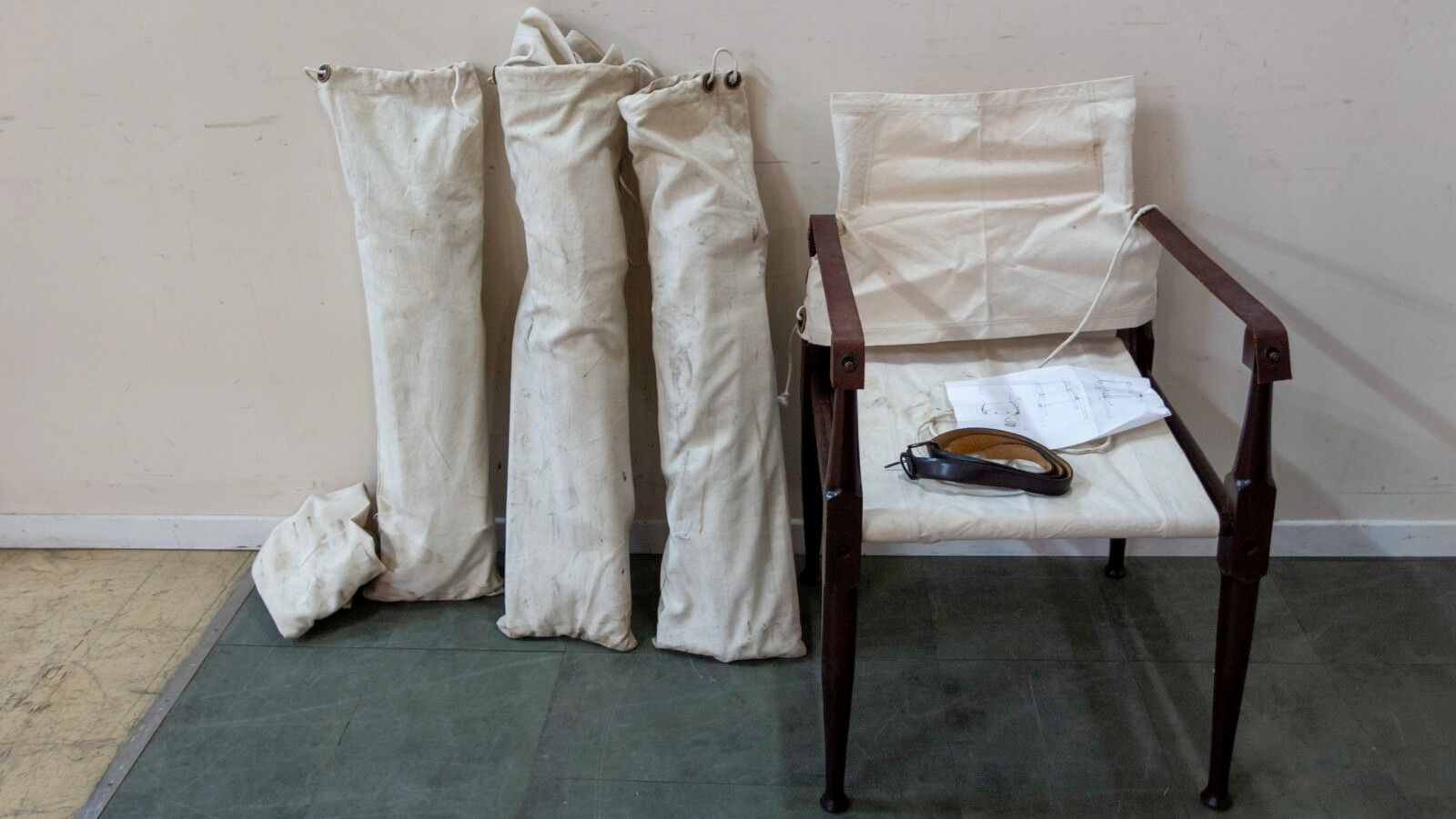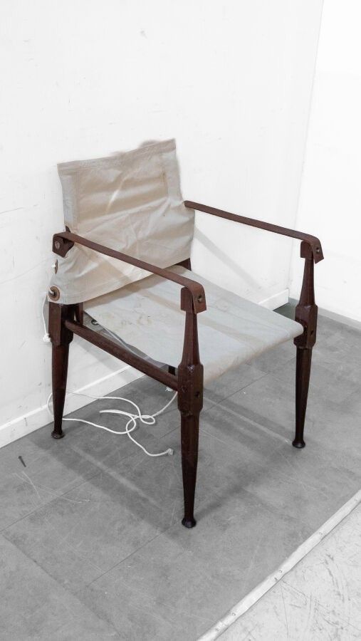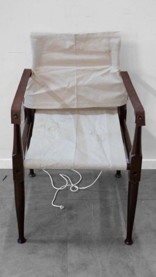 Set of four Safari armchairs in the style of Wilhelm KIENZLE in wood and canvas