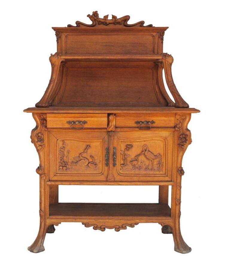 Premium Art Nouveau oak sideboard with heron and floral motifs