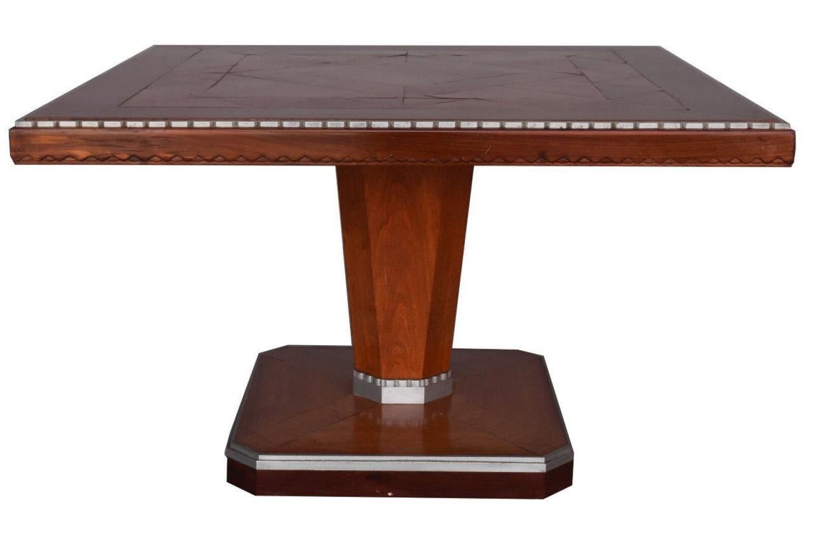 Premium Art Deco pedestal table with square rosewood and metal top i…