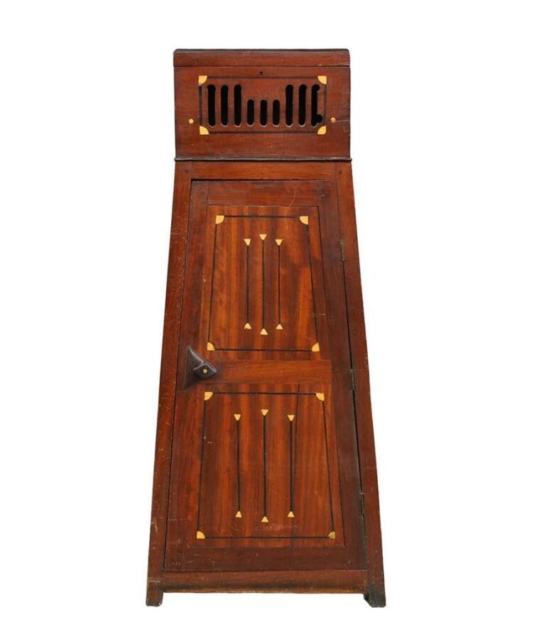 Egyptomania settee in bone and ebony marquetry, opens with a door and the top lifts off.