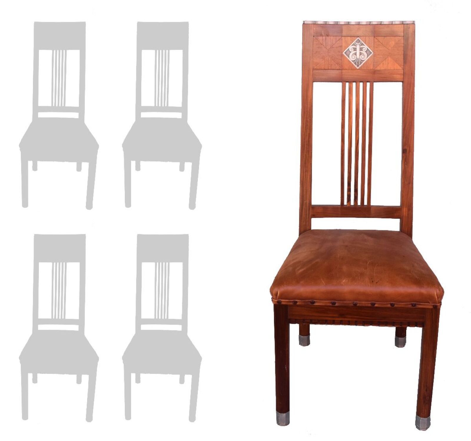 Set of four Art Deco chairs in the style of Maison DOMINIQUE in rosewood and metal, leather seat