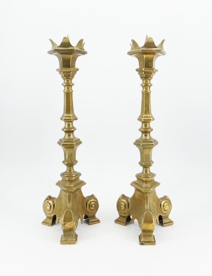 Pair of tripod bronze candlesticks