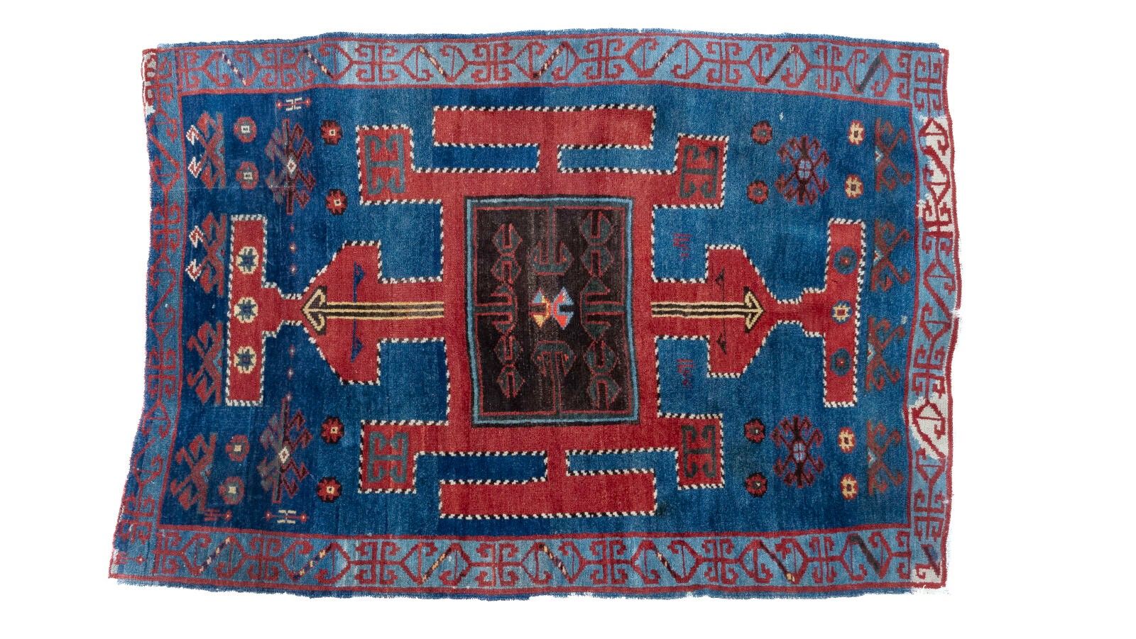 Caucasus Chirvan carpet with blue background and large turtle medallion, circa 1930
