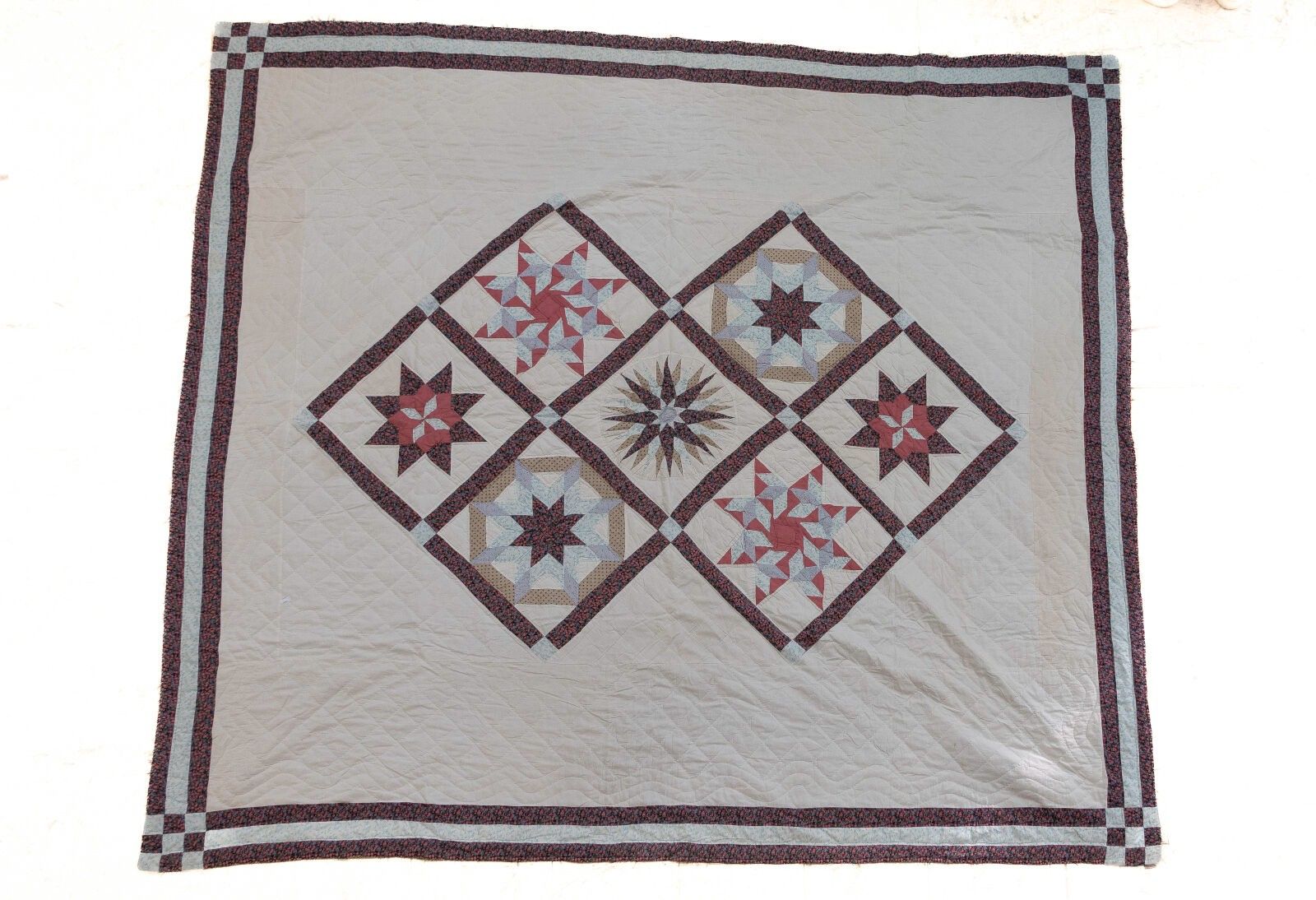 Ivory-backed bedspread decorated with lozenges dotted with polychrome stars