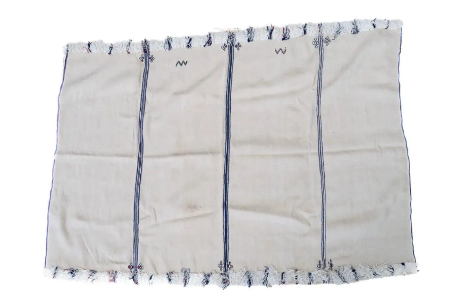 Berber Kilim Handira with ivory background decorated with polychrome stripes