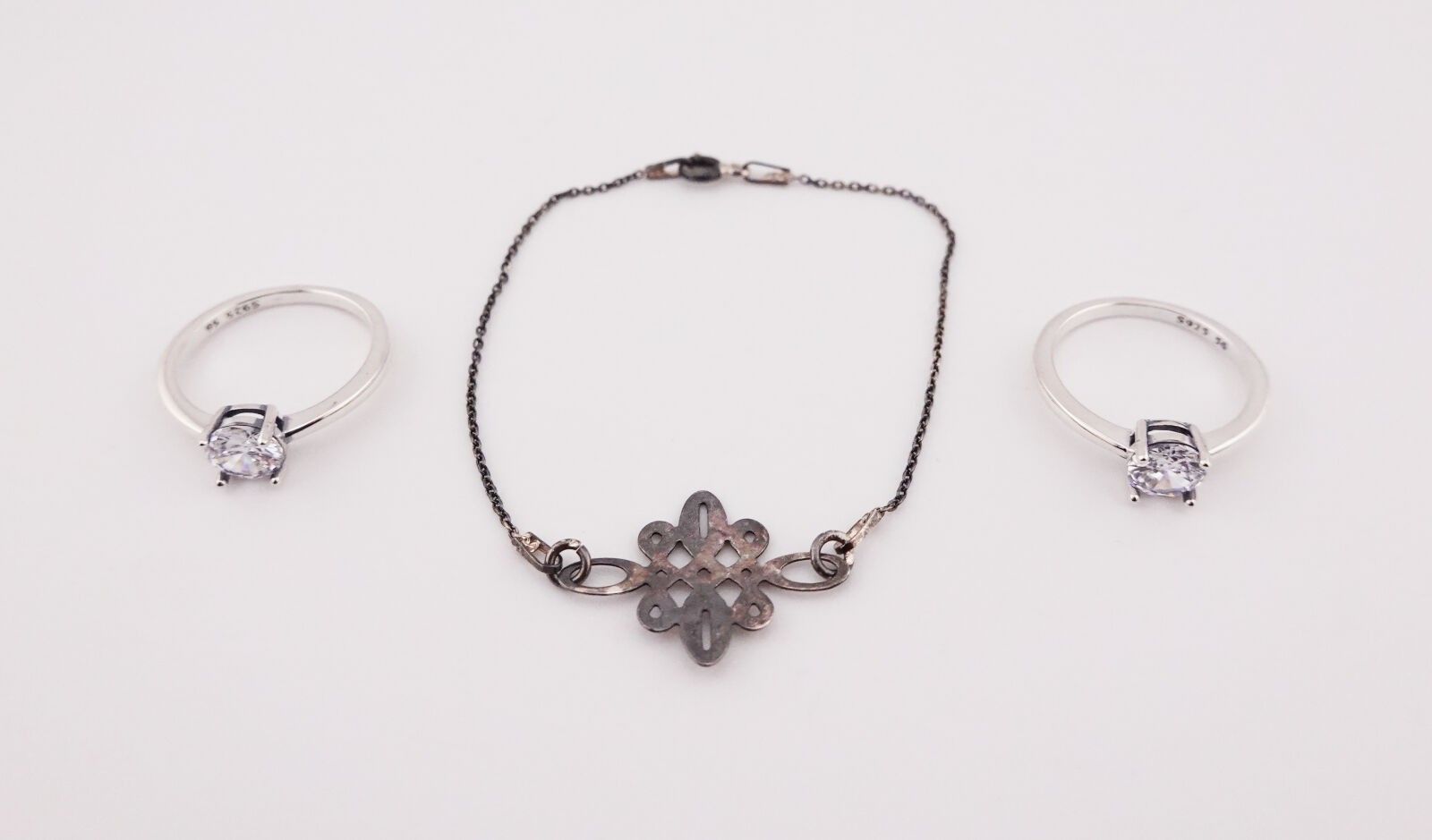 Lot consisting of a bracelet and two stone-set silver rings
