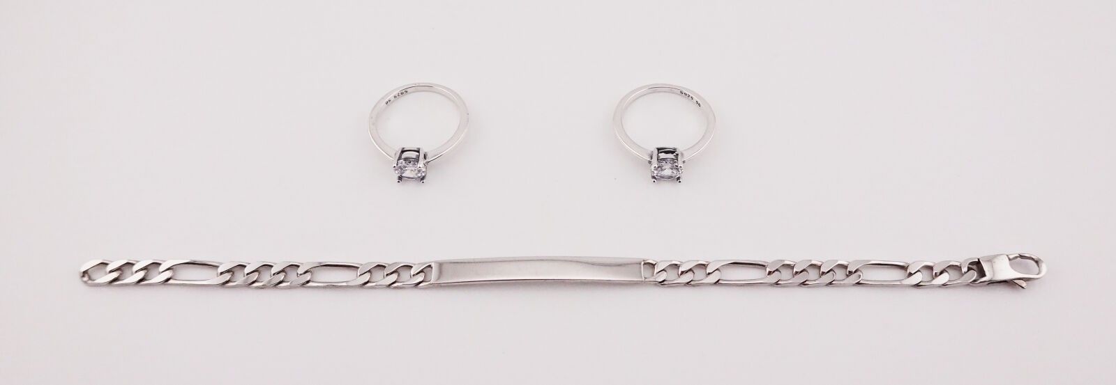 Lot consisting of a gourmette bracelet and two stone-set silver rings