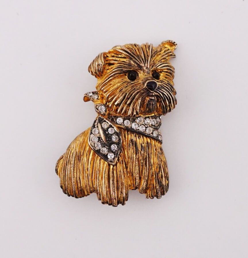 CARVEN Brooch representing a dog in gilt metal and white sto…