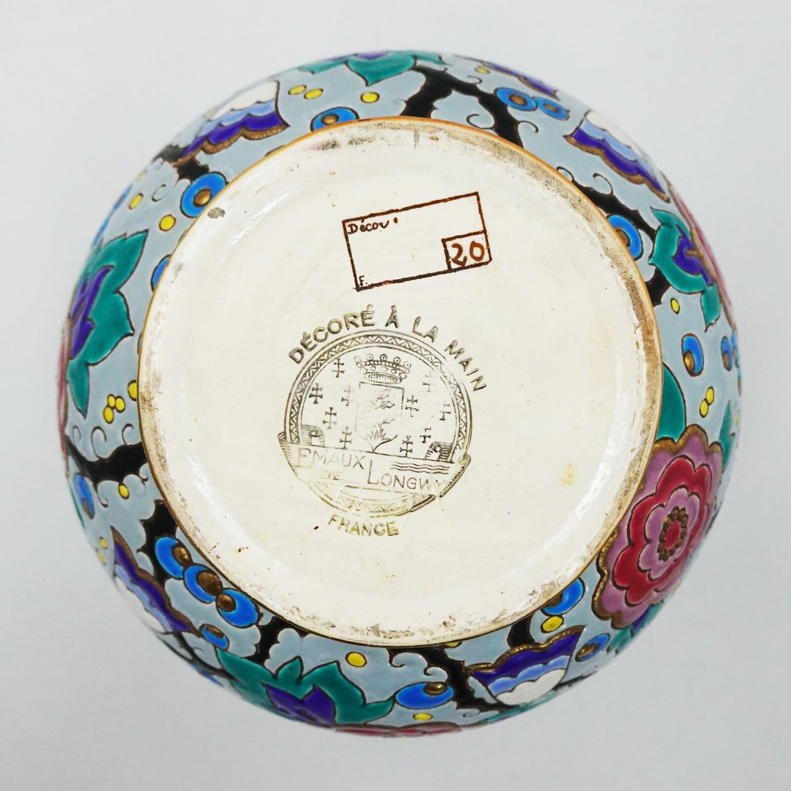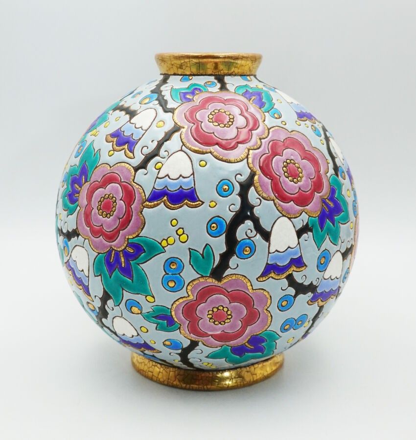 LONGWY Art Deco earthenware ball vase decorated with floweri…