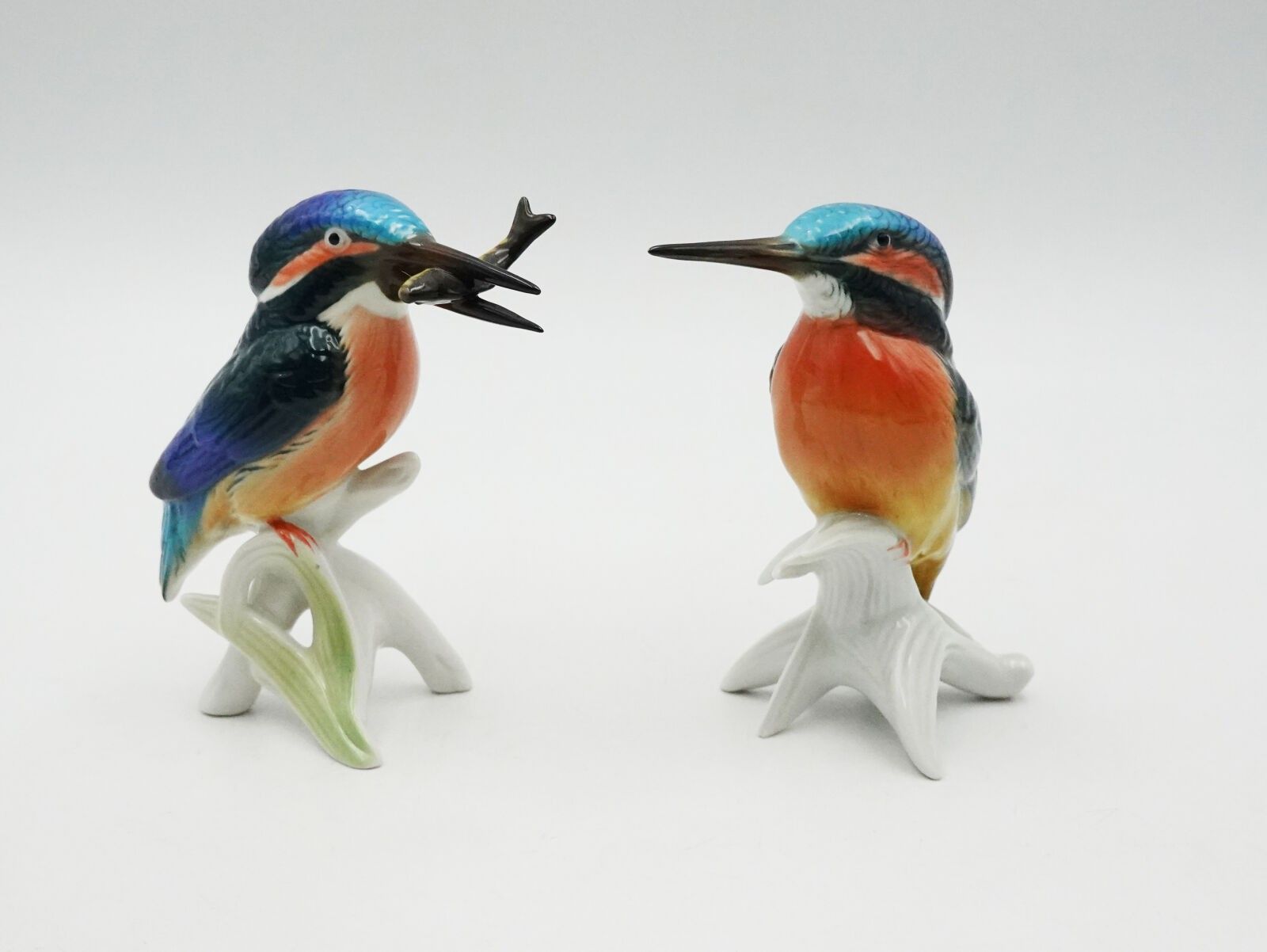 MANUFACTURE KARL ENS Two enamelled porcelain kingfishers, si…