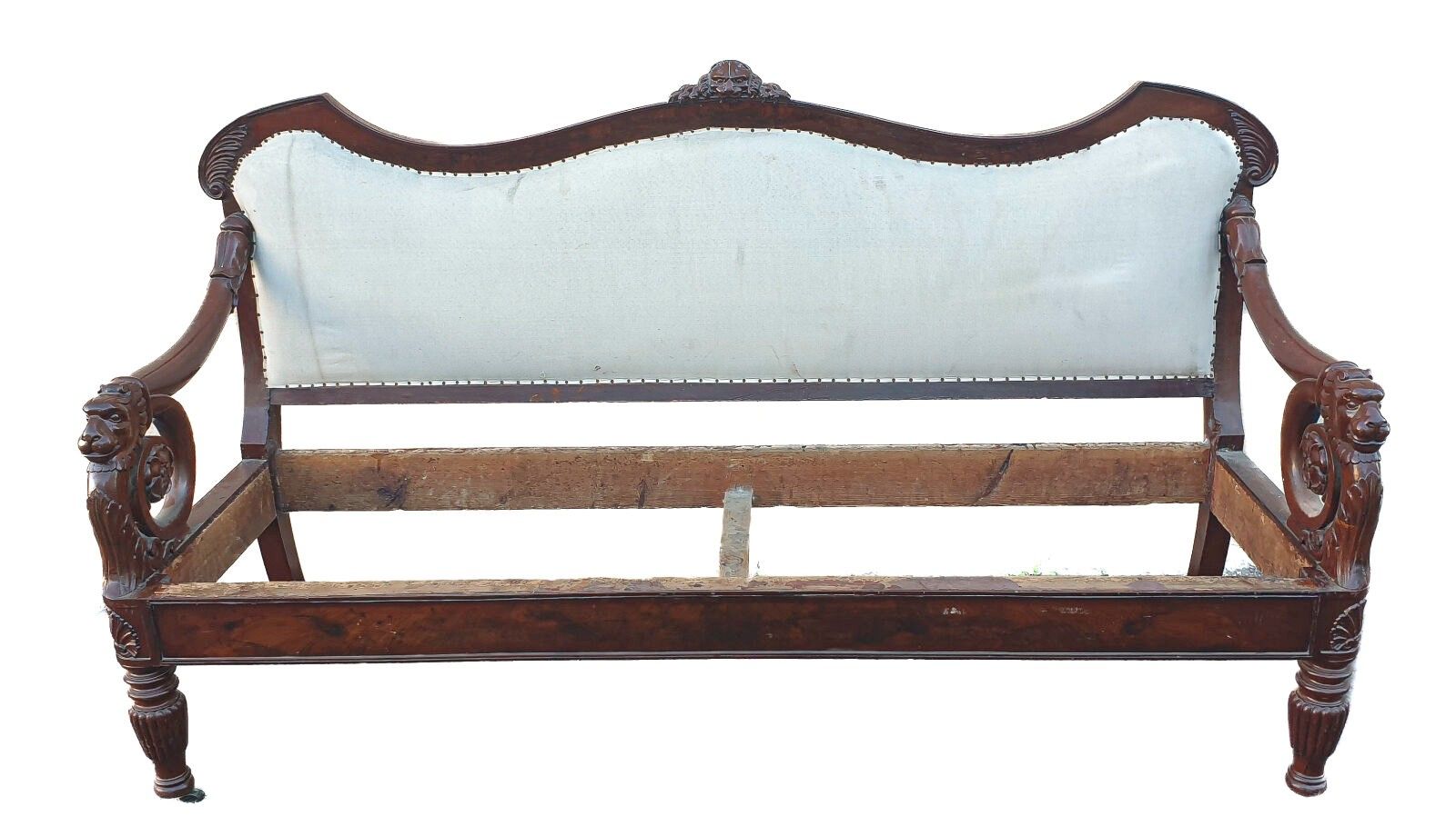Large carved mahogany bench with lion heads, Italy, 19th c.