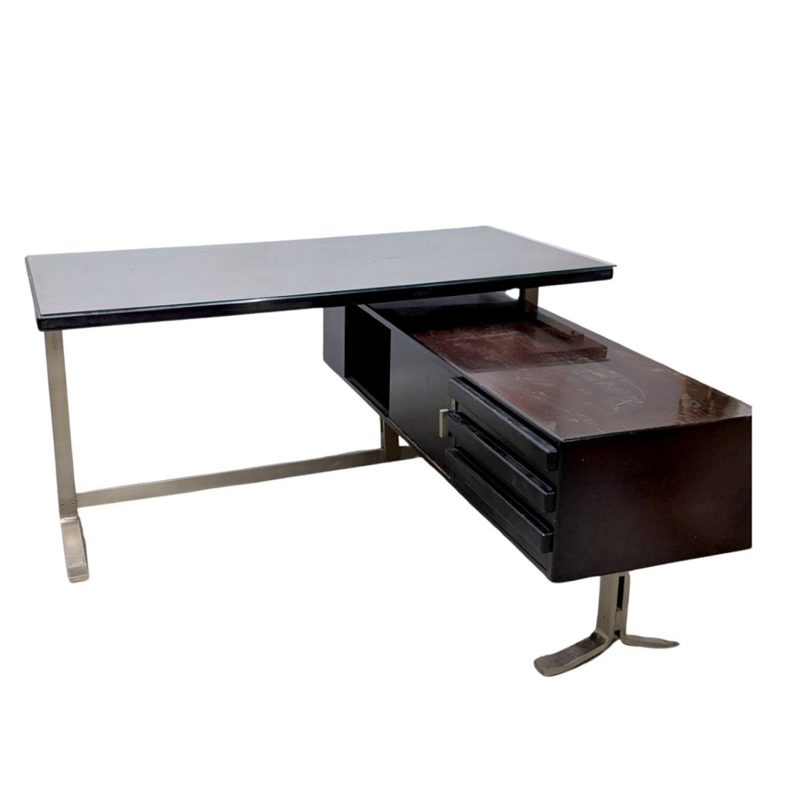 FORMANOVA Wood and metal desk with return, 1980s
