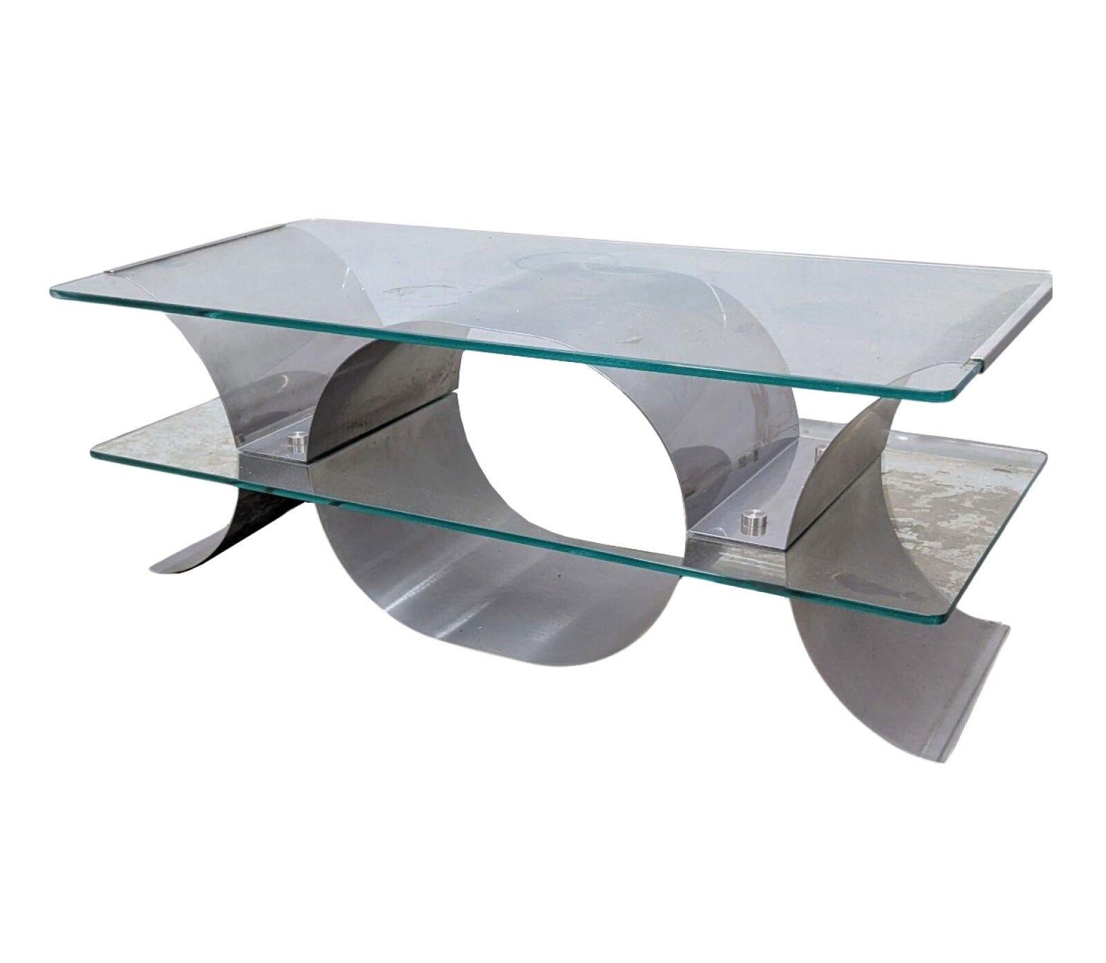 Coffee table in folded stainless steel with two tops, 1980s
