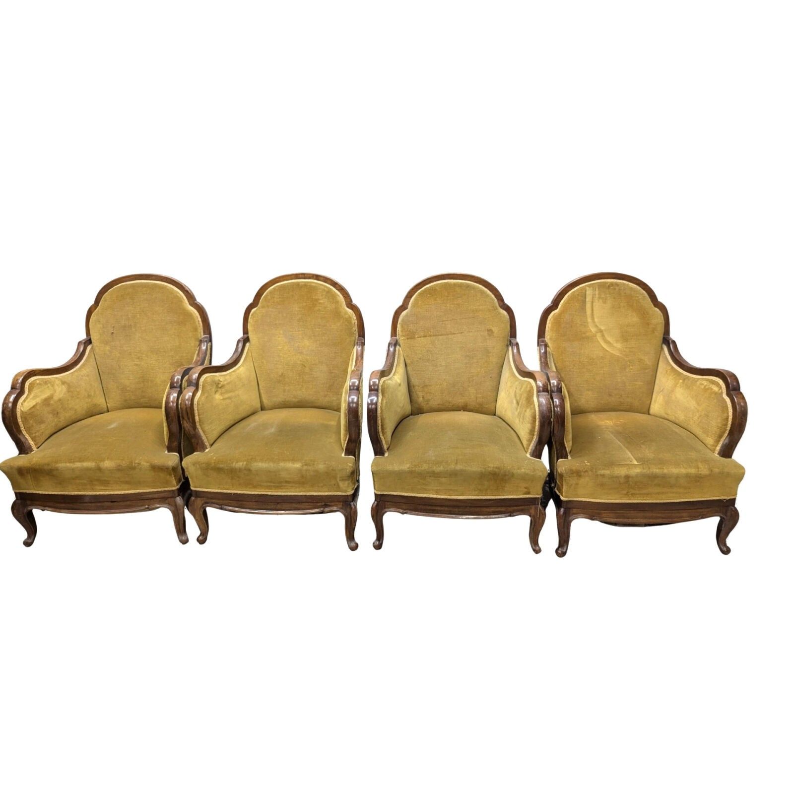 Set of four Louis XV style armchairs upholstered in mustard velvet