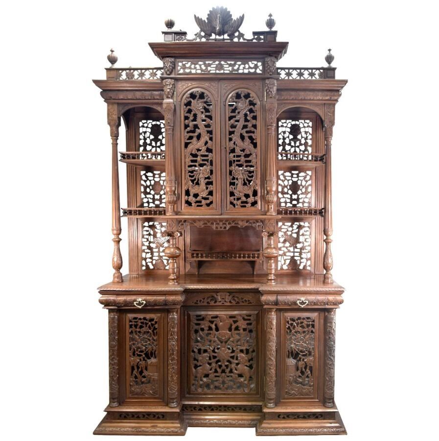 Premium Large Indochinese two-piece sideboard in rosewood decorated …