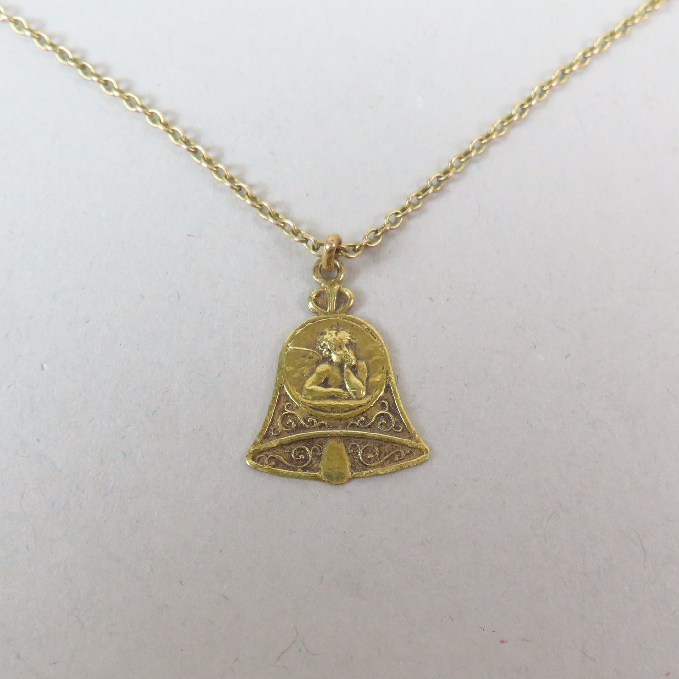 Pendant in yellow gold (750/00), depicting a cherub on a bel…