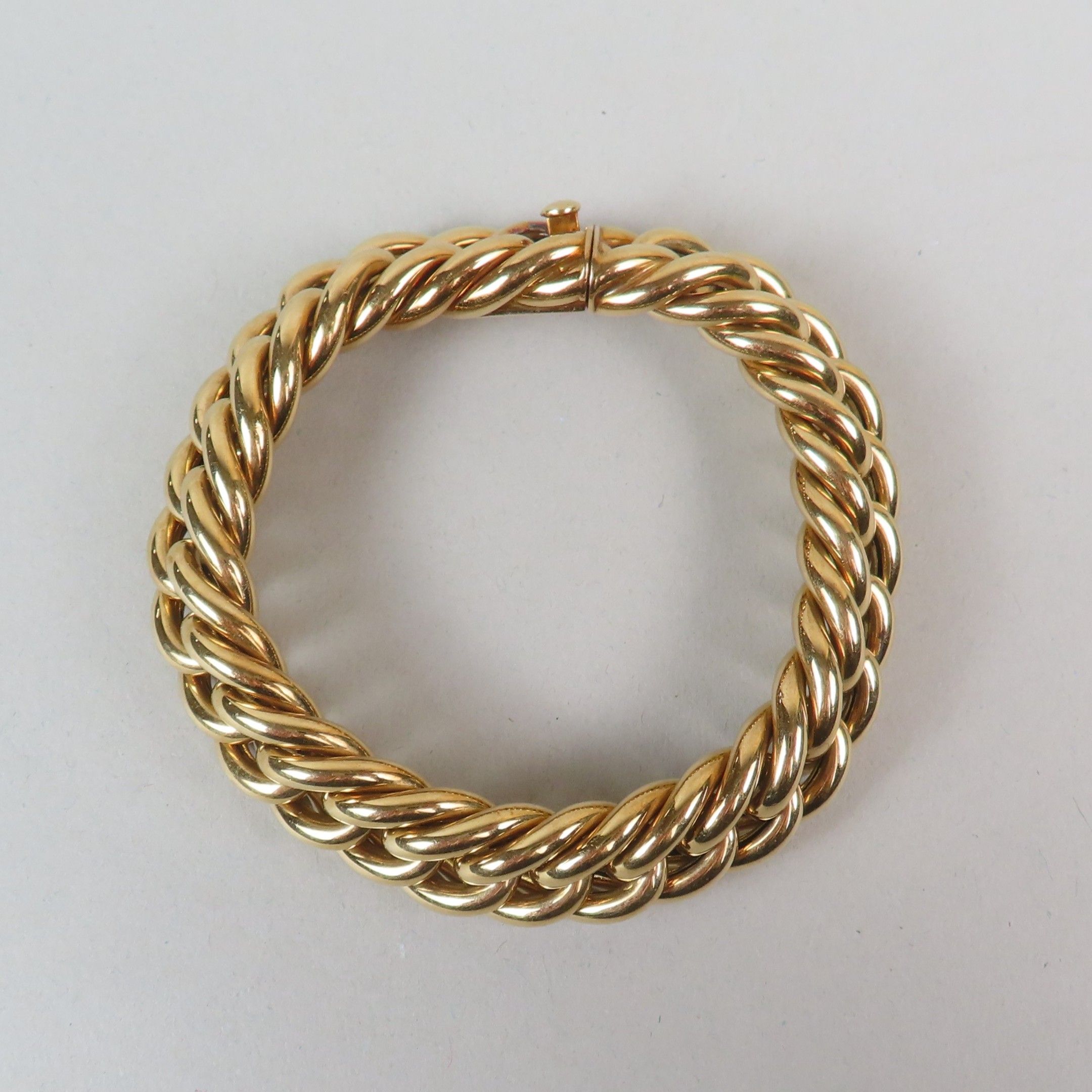 Bracelet in yellow gold (750/00) with curb chain; ratchet clasp with eight safety catches. Length = 19 cm. Weight = 45.8 g.