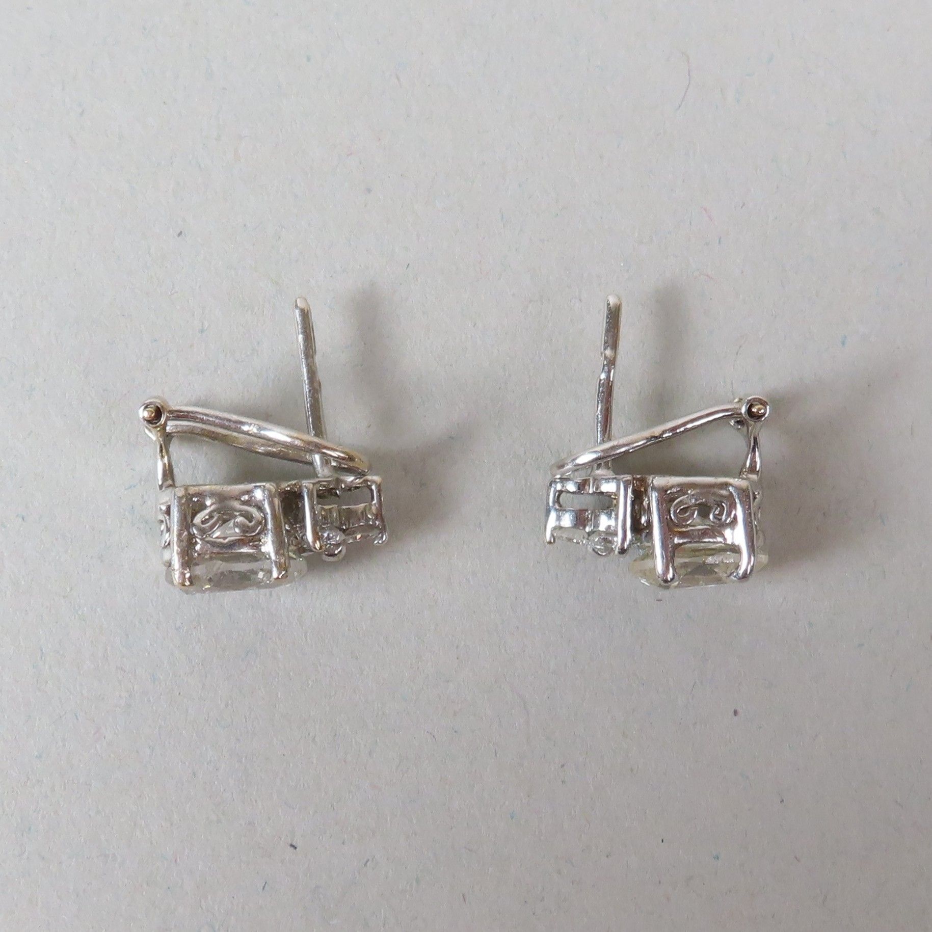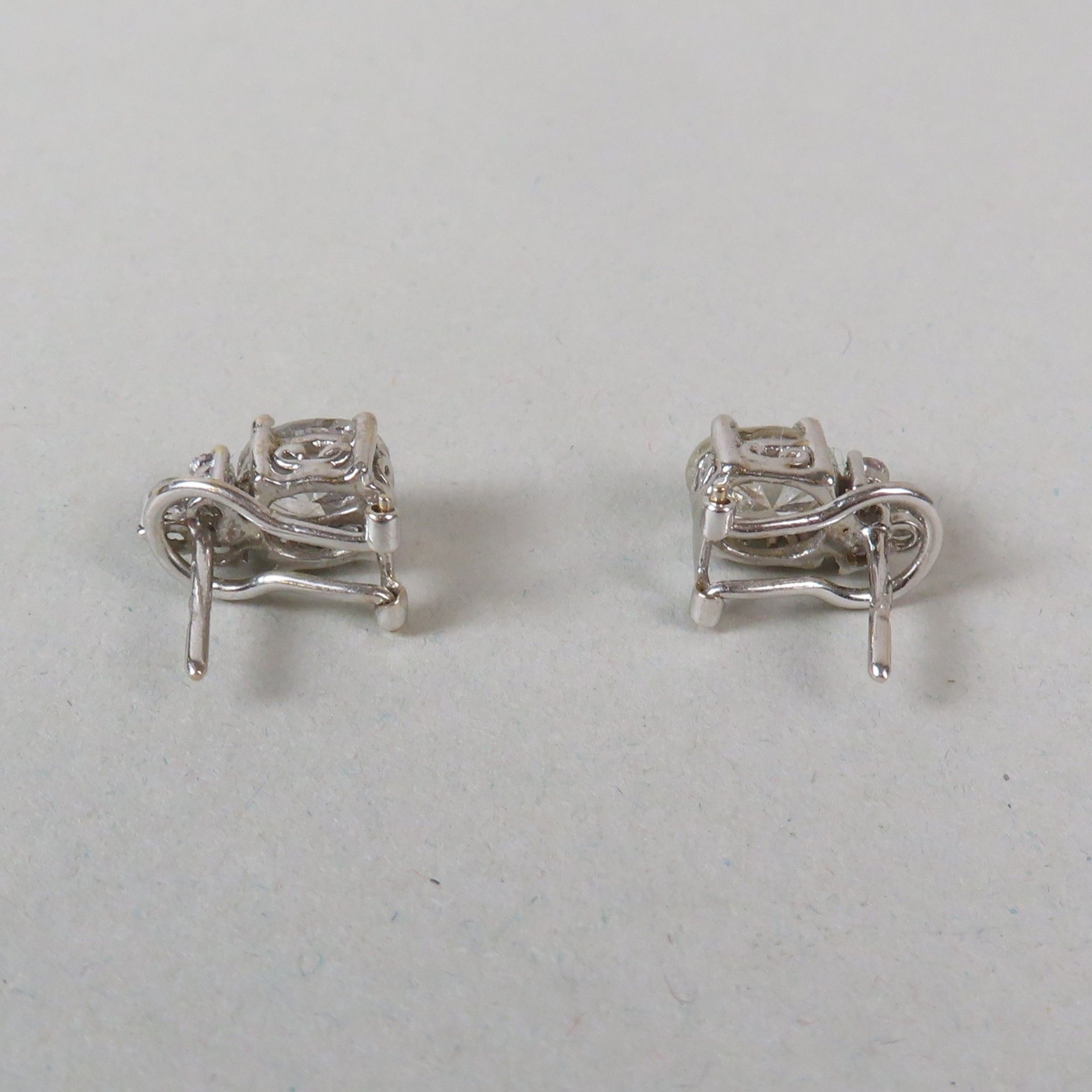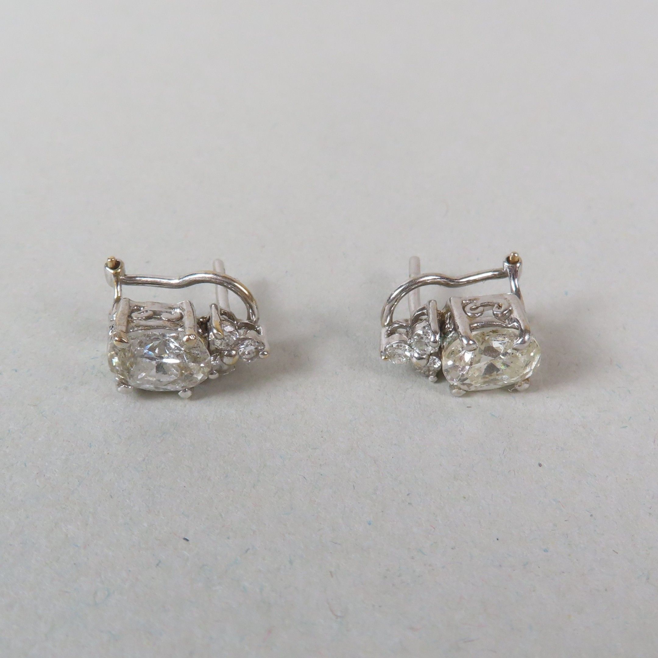 Pair of stud earrings in white gold (750/00), each set with four diamonds (approx. 7.5 x 5.5 mm for the two main stones). Gross weight = 3.7 g. (two slight chips on the edge of one diamond)