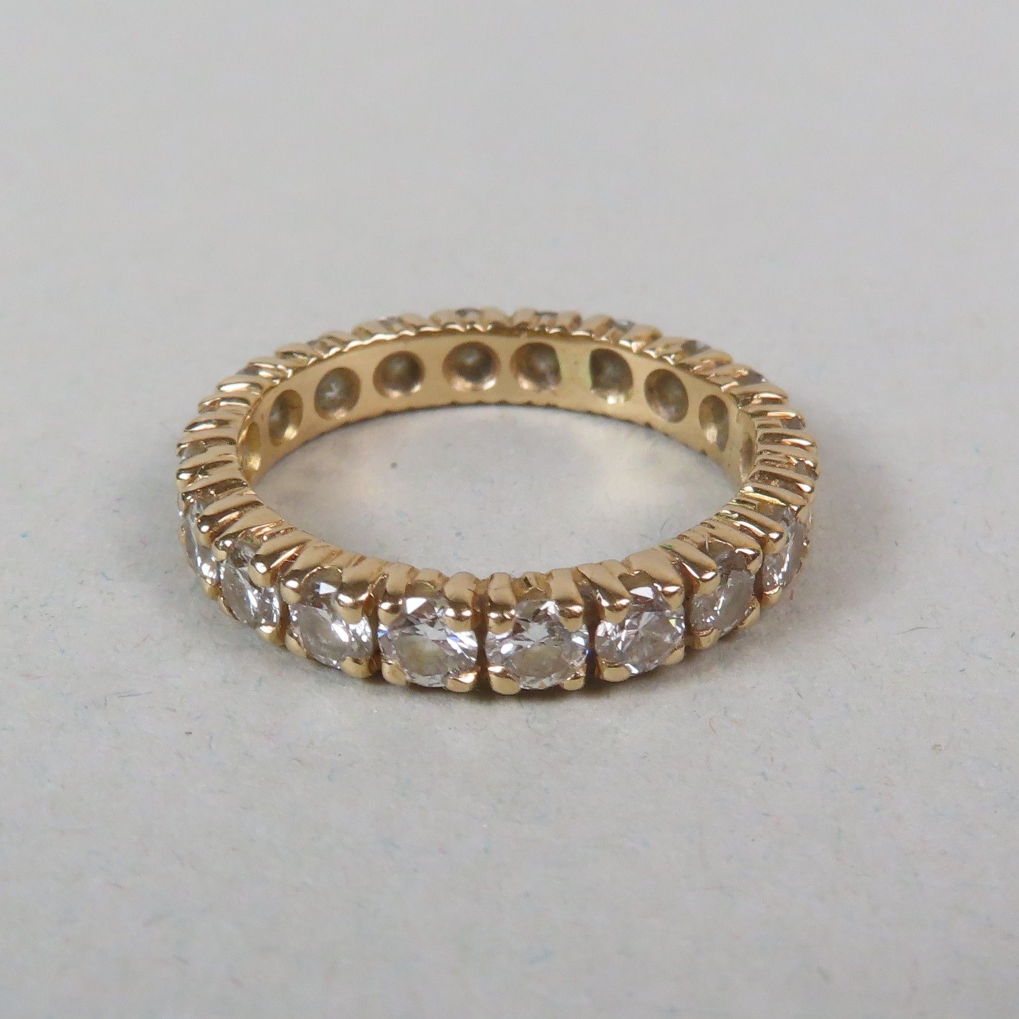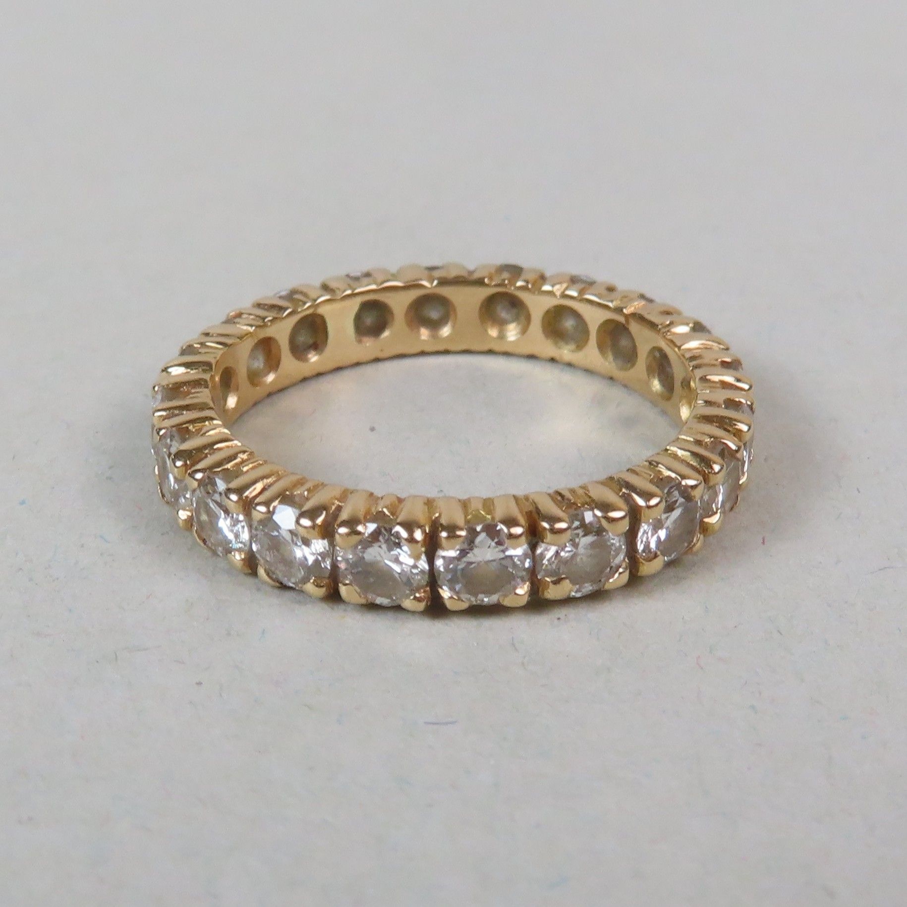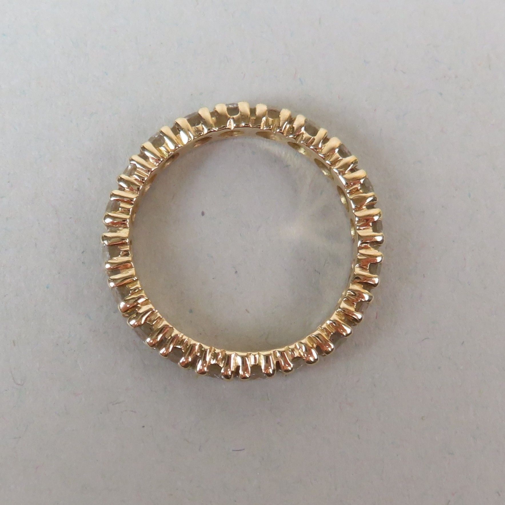 American wedding band in yellow gold (750/00), set with twenty diamonds (approx. 0.1 ct each). Gross weight = 3.6 g.