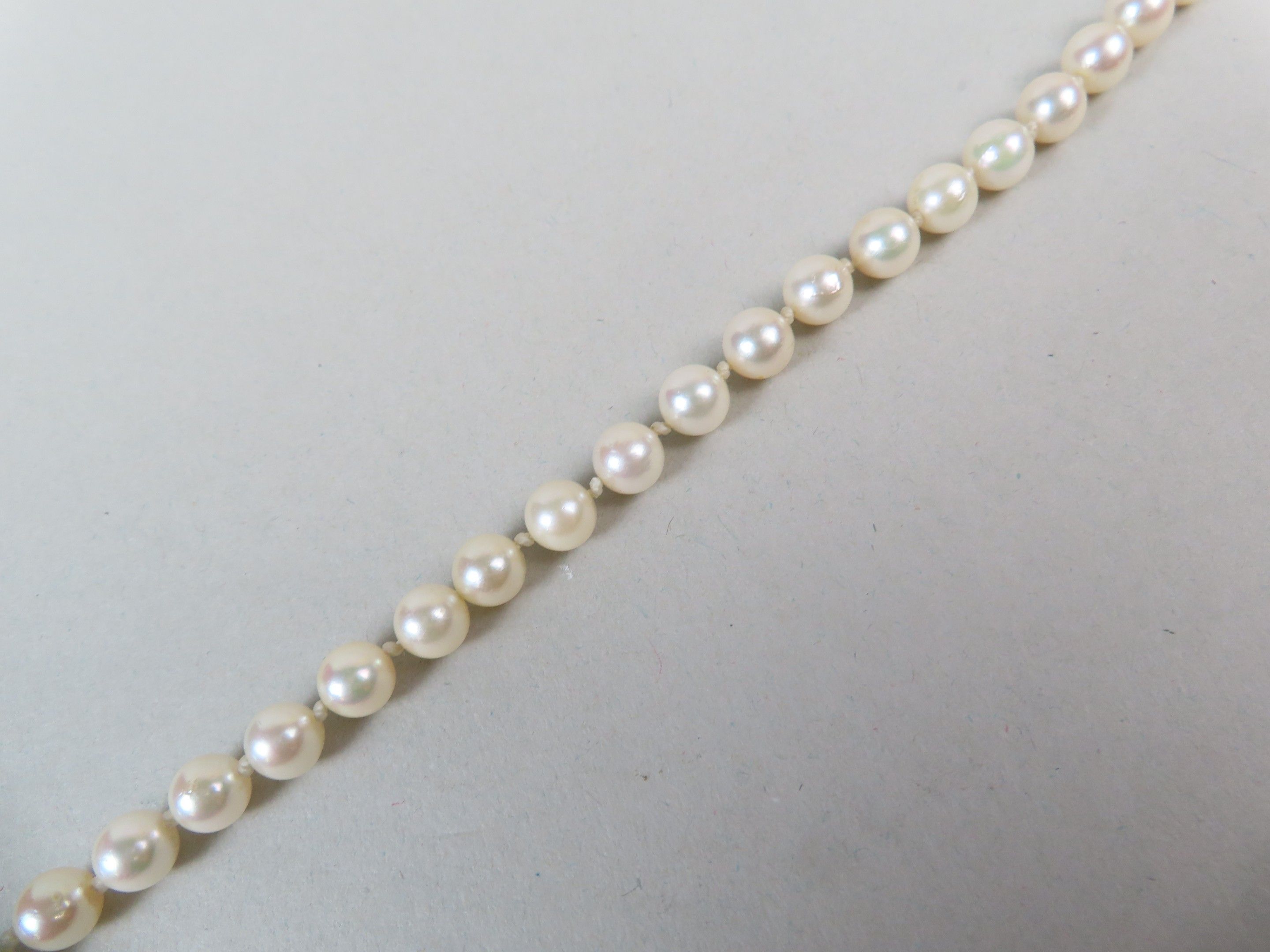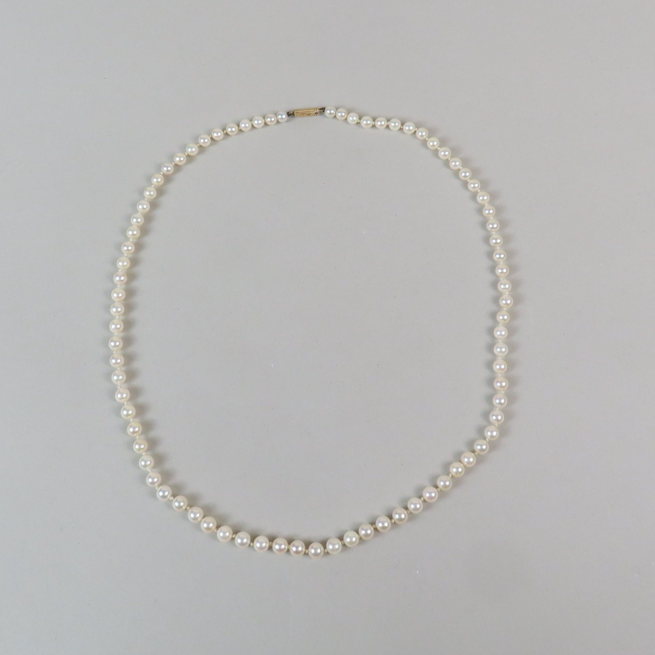 Cultured pearl necklace (Diam. = 5.5 mm); clasp in yellow gold (750/00). Length = 57 cm.
