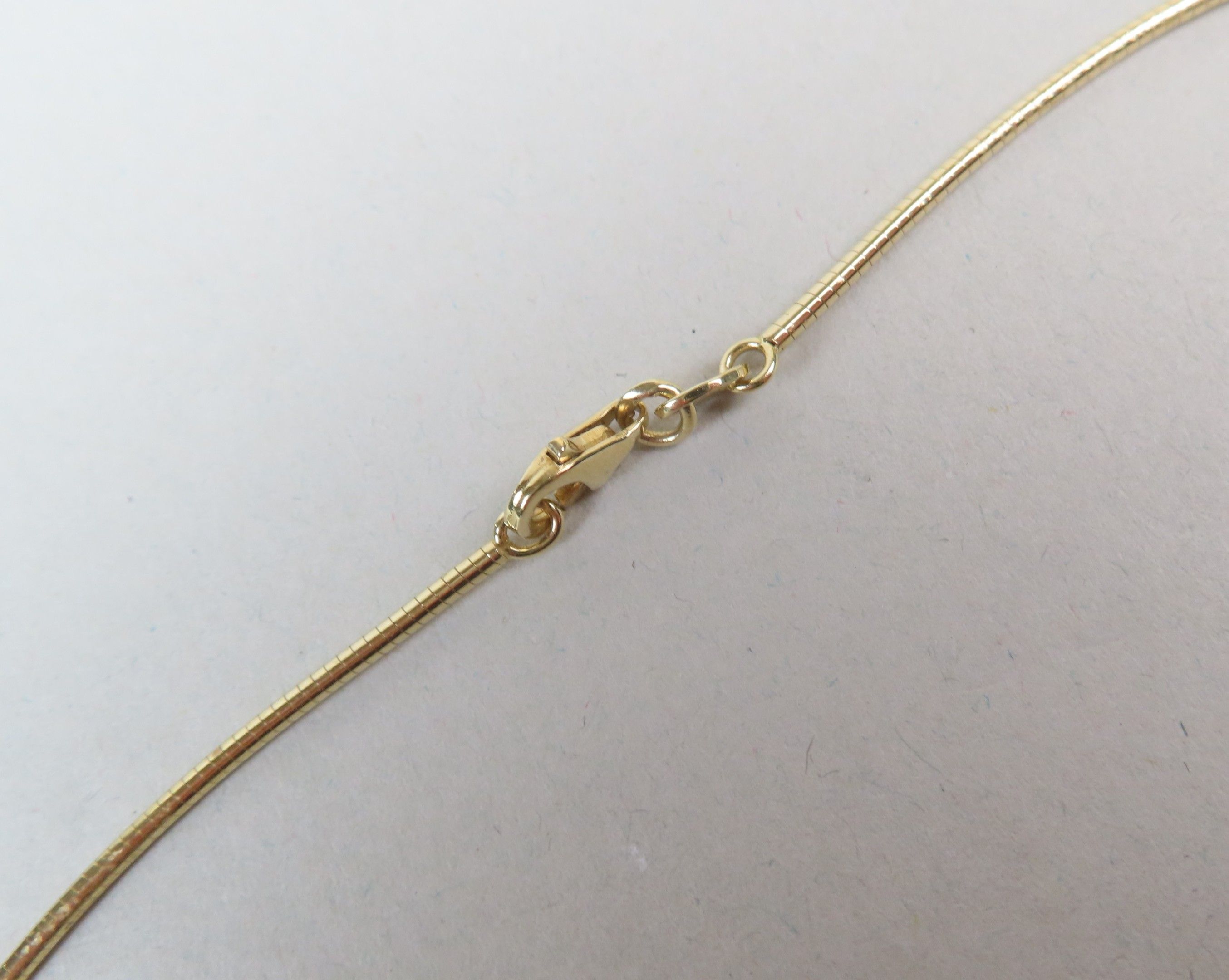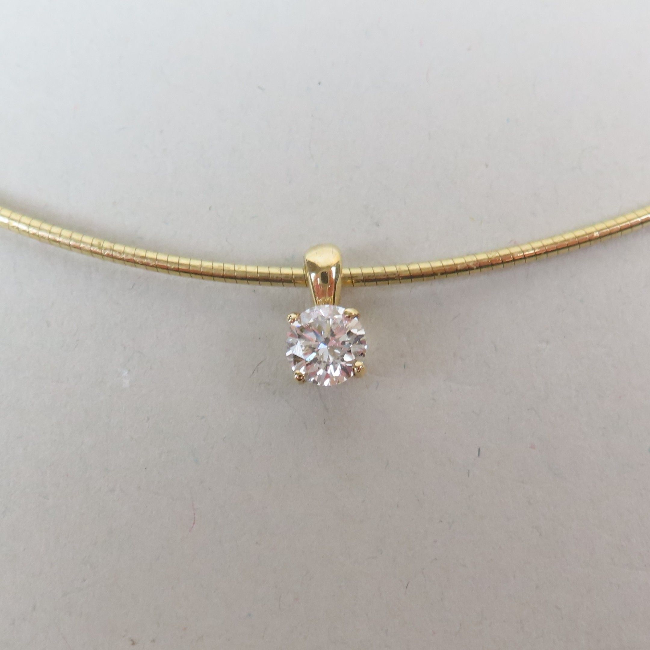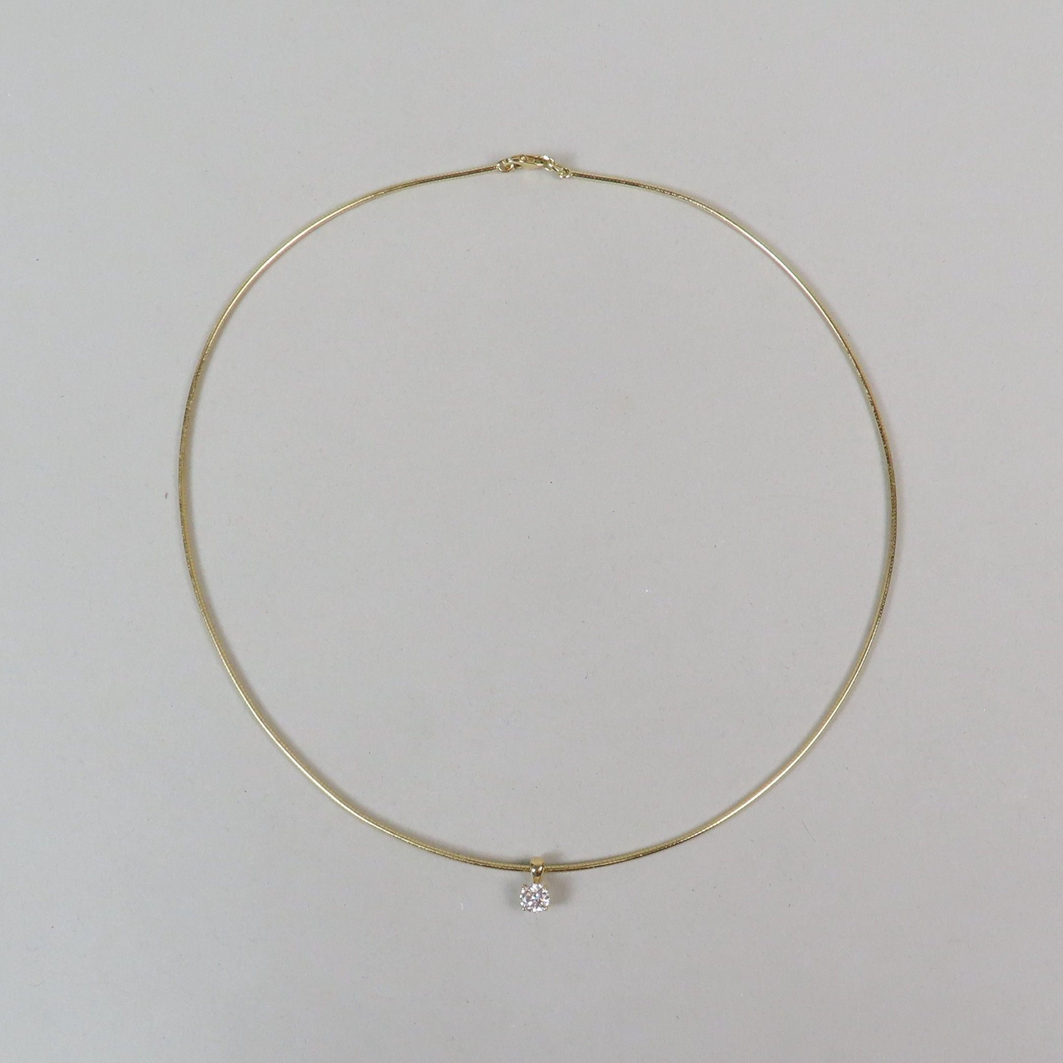 Choker in yellow gold (750/00) holding a pendant set with a modern-cut diamond weighing approximately 0.6 ct. Length = 46 cm. Gross weight = 9.4 g.
