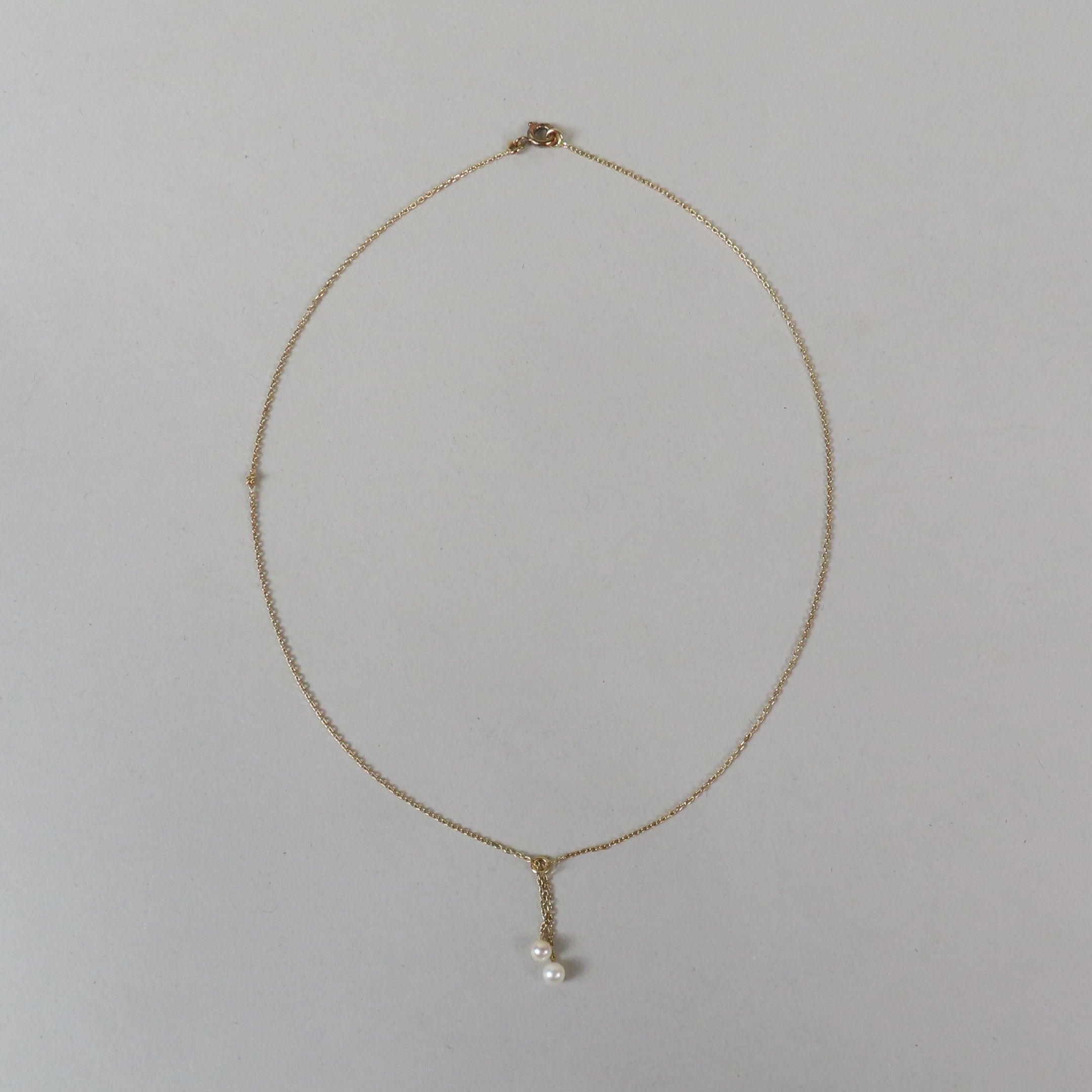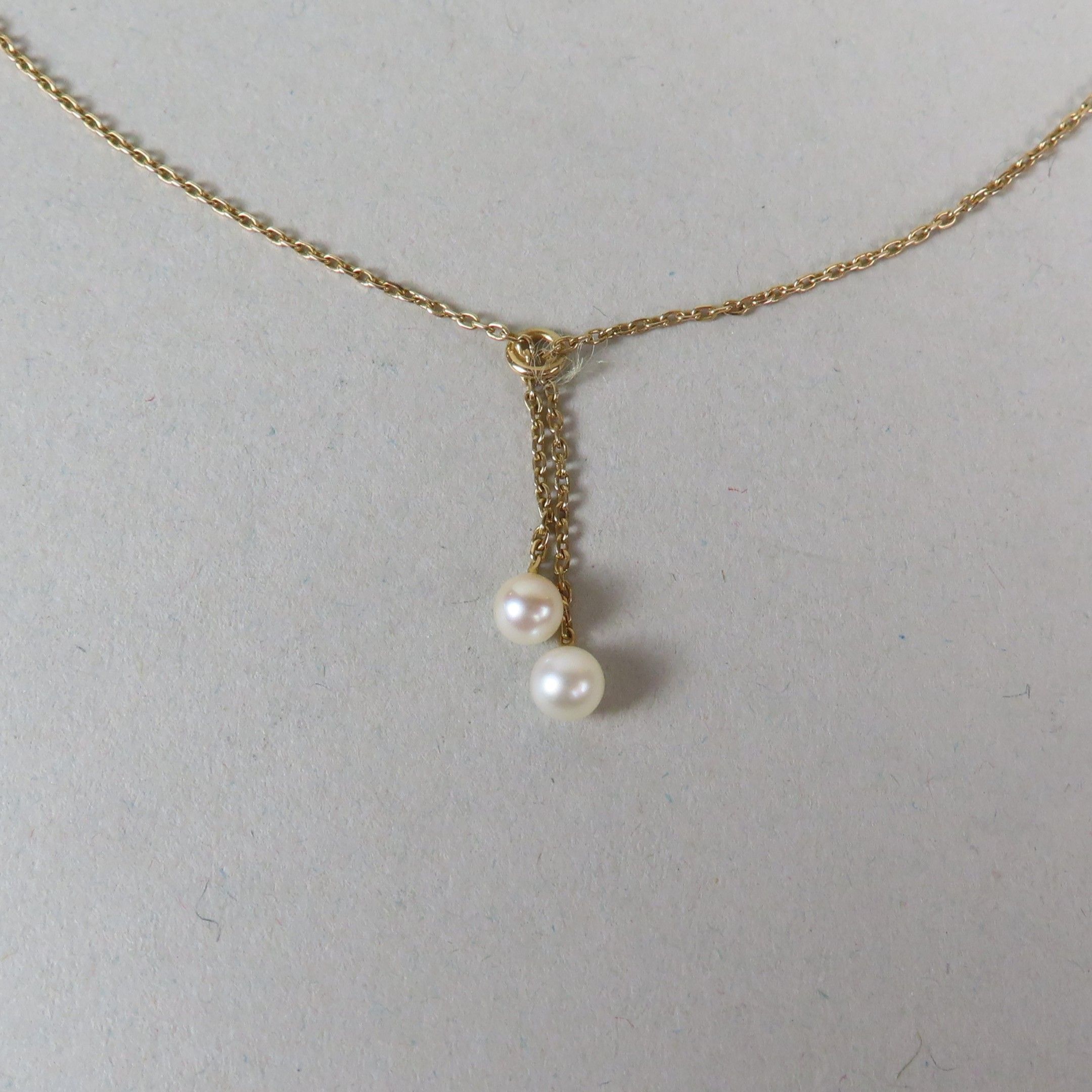 Chain in yellow gold (750/00), set with two pearls. Length = 39.5 cm. Gross weight = 2 g.