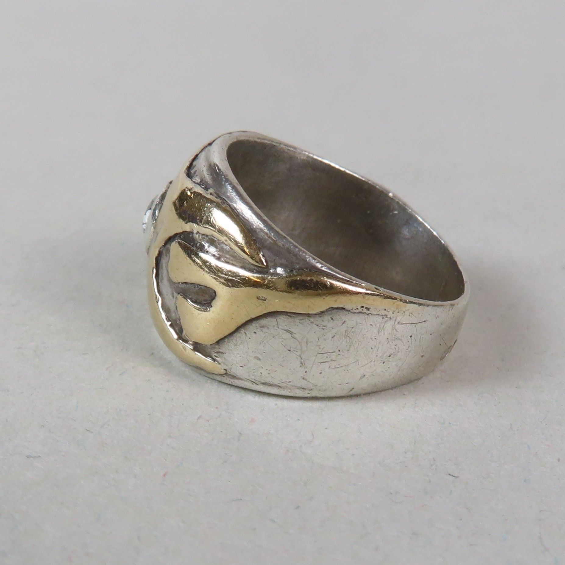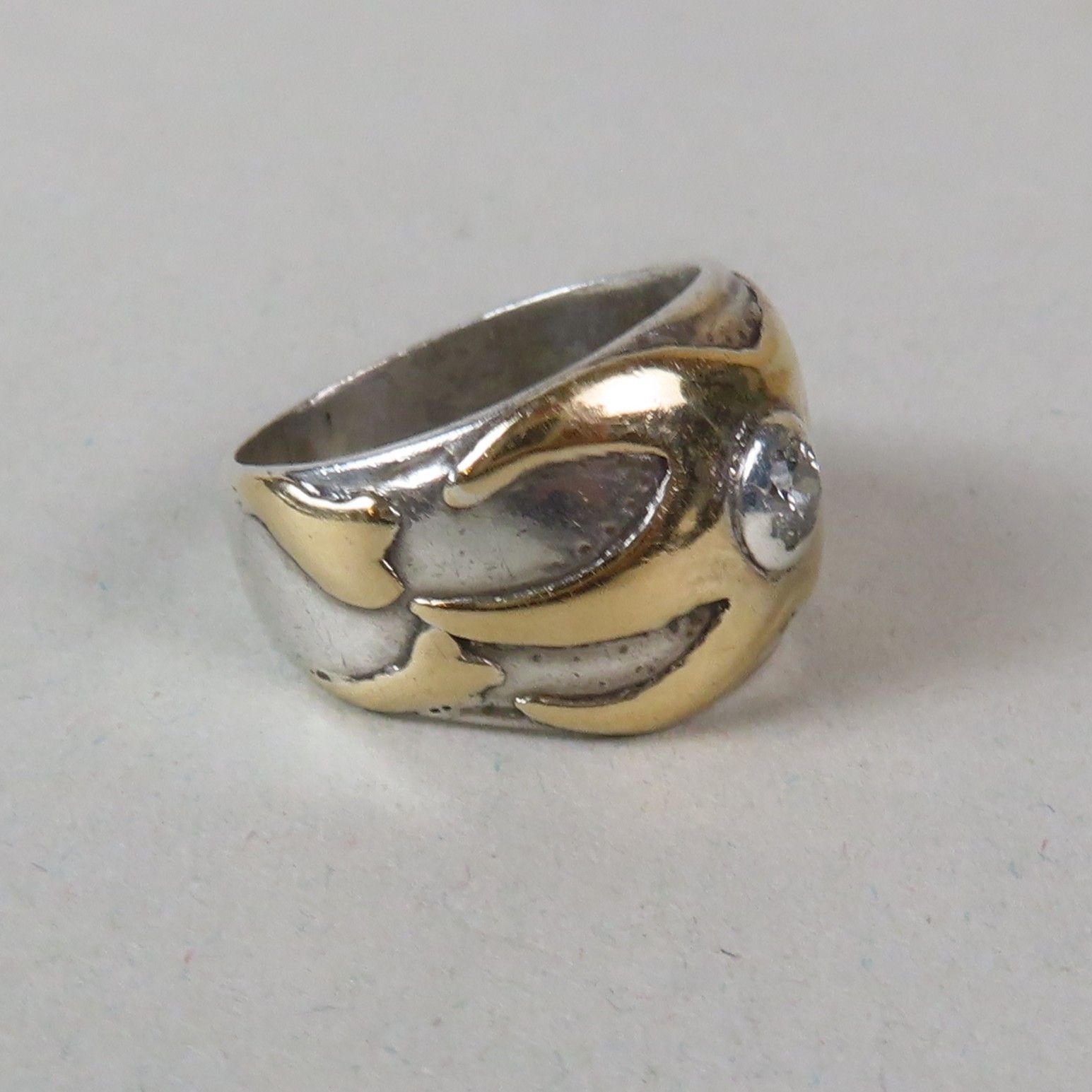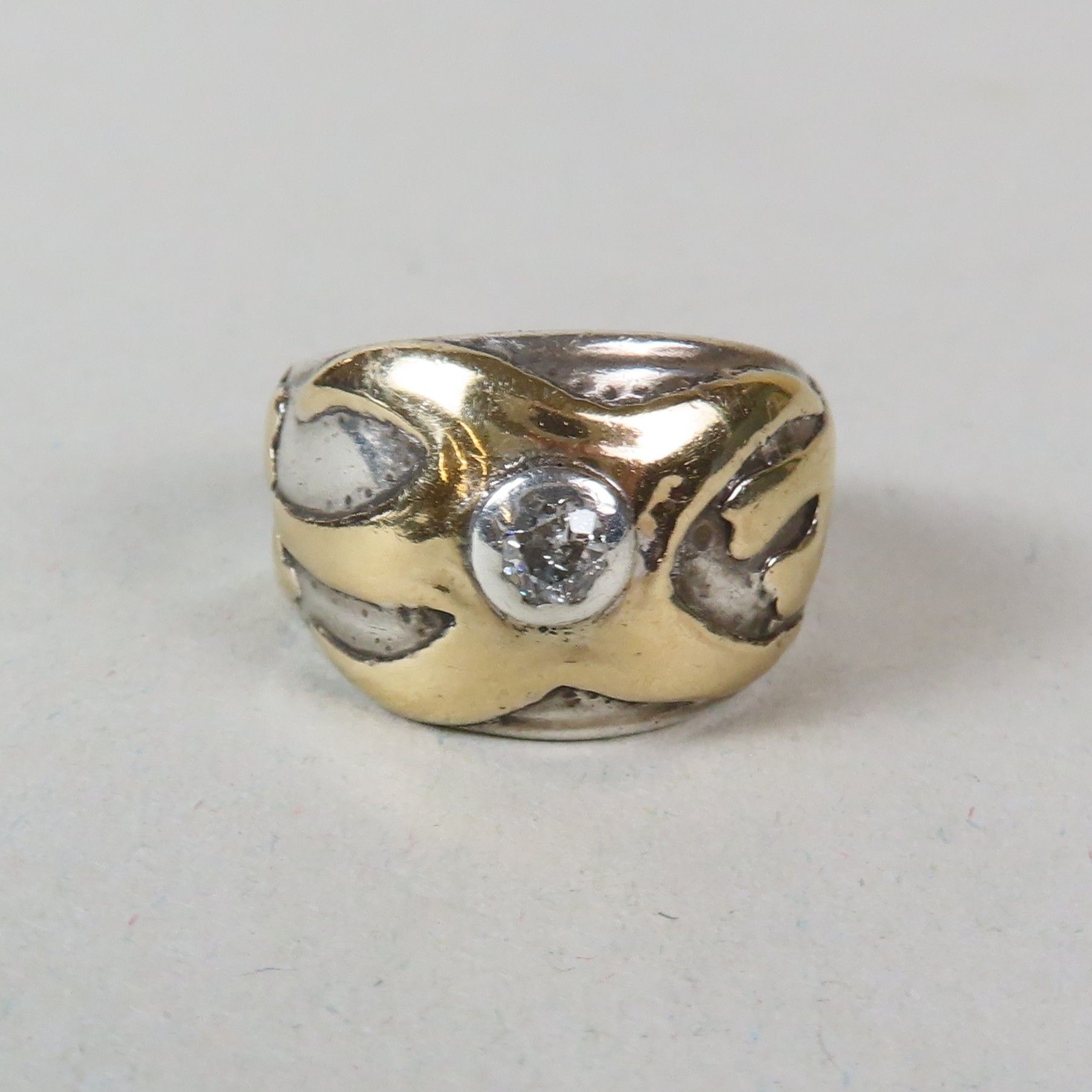 Jules DEON (1880-1956), Nancy, attributed to. Yellow gold (750/00) and silver ring, set with a small old-cut diamond (approx. 0.05 ct), decorated with a starfish and seaweed. TDD = 48. Weight = 7 g.