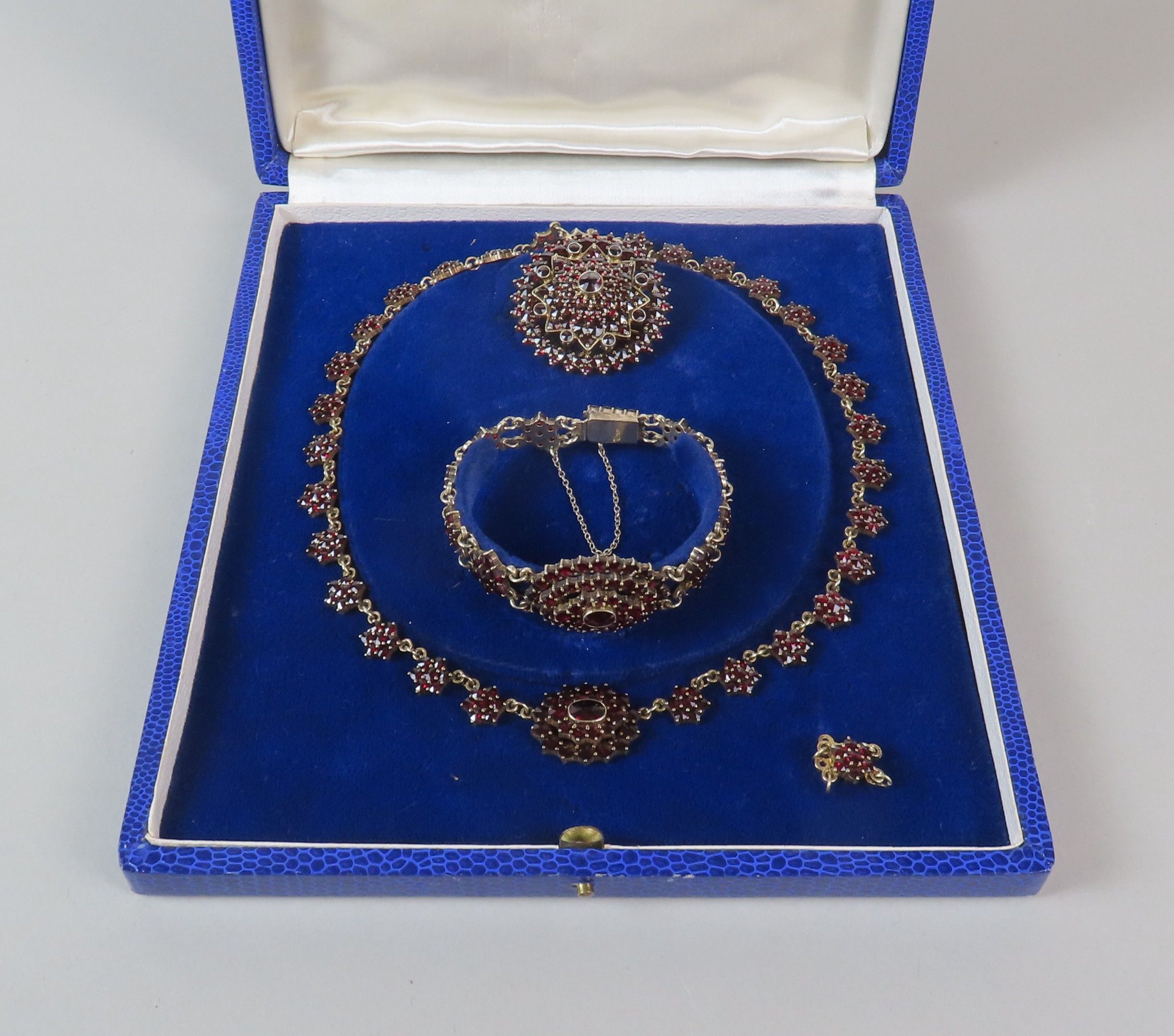 Set in silver gilt (900/00) and garnets, comprising a neckla…
