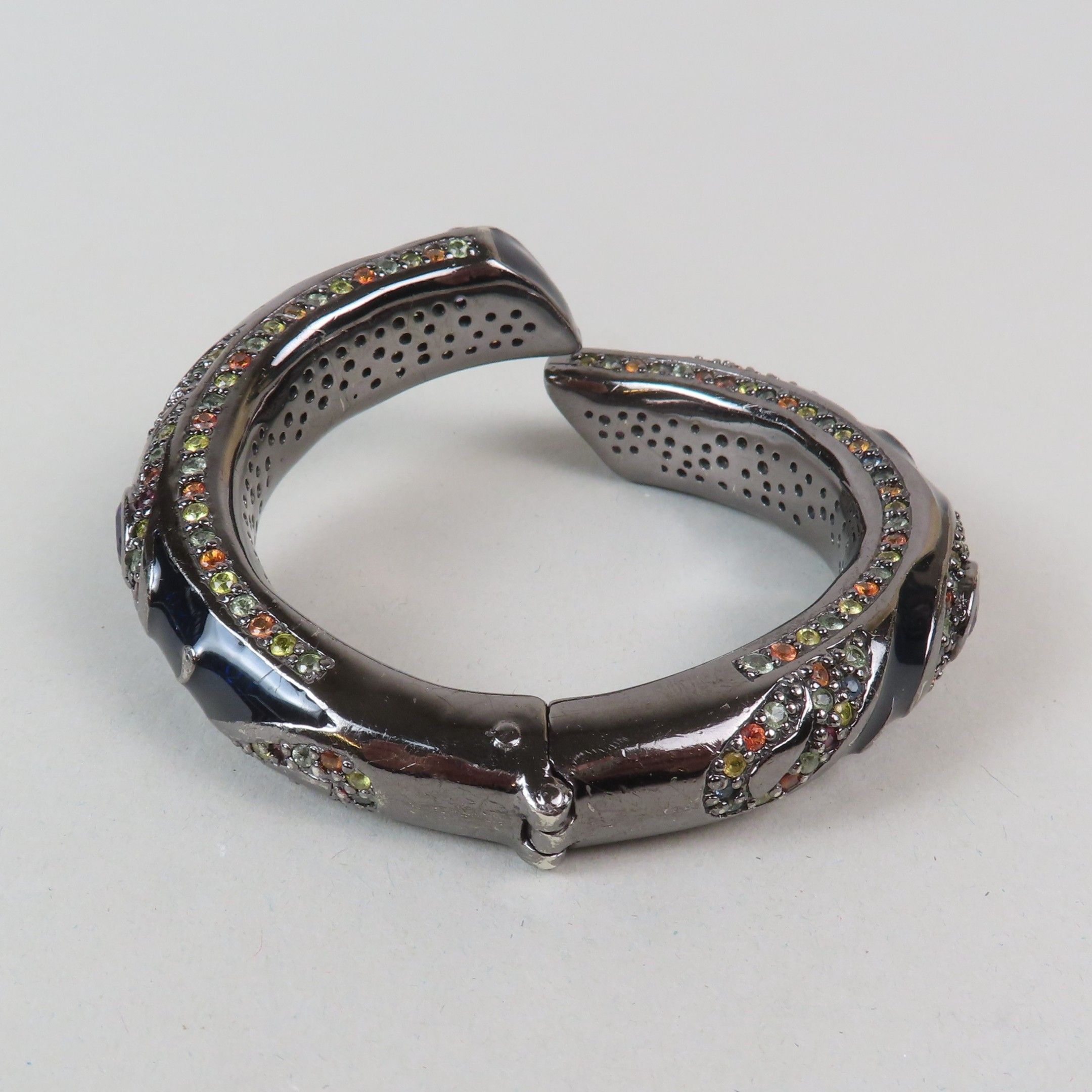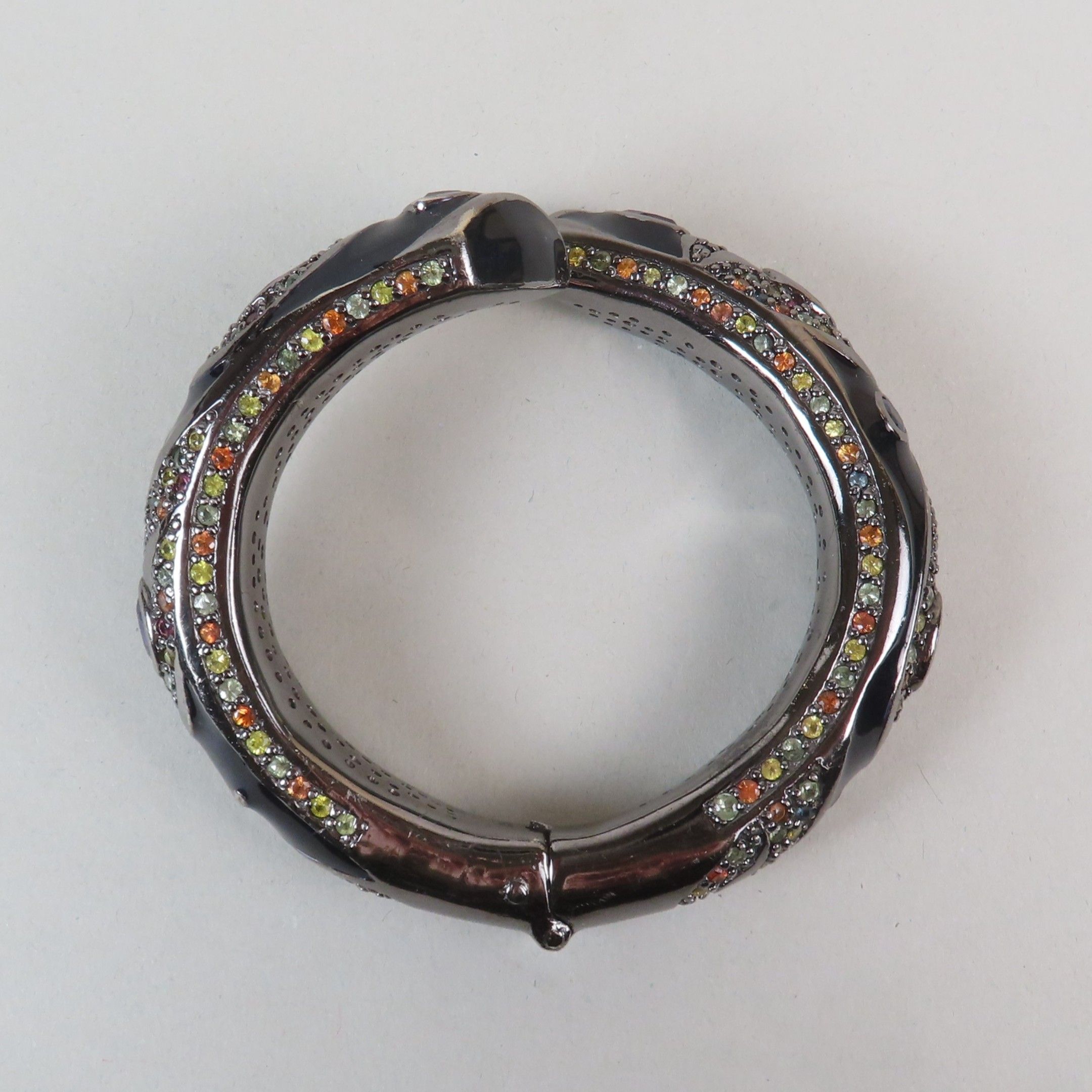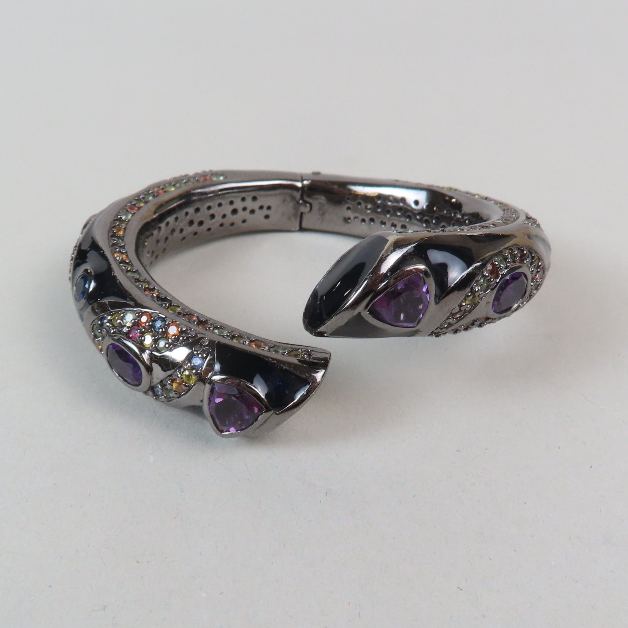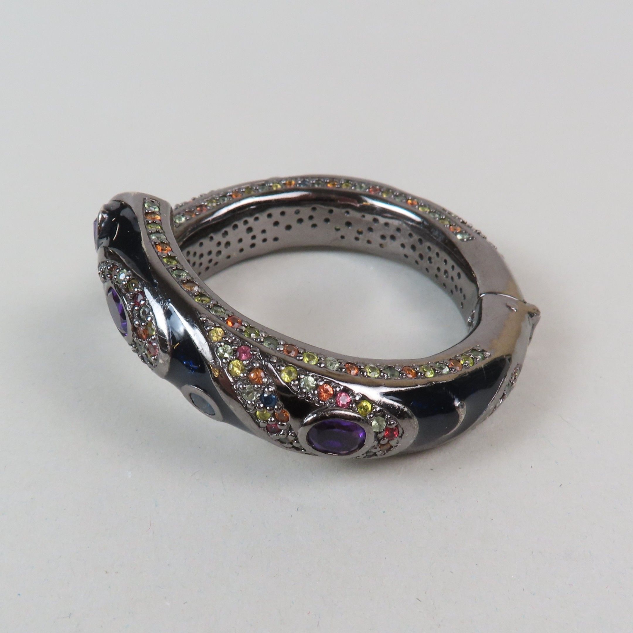 Enamelled silver bracelet set with semi-precious stones. Inside max. width = 57 mm. Gross weight = 89.1 g.